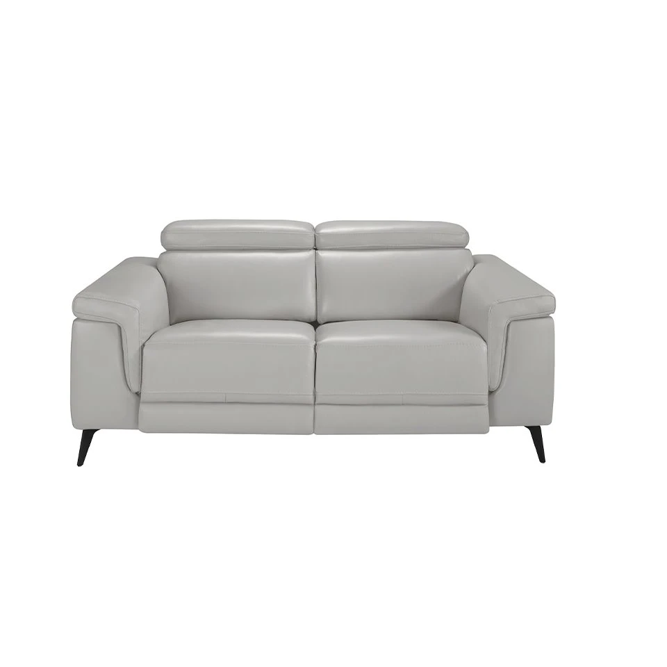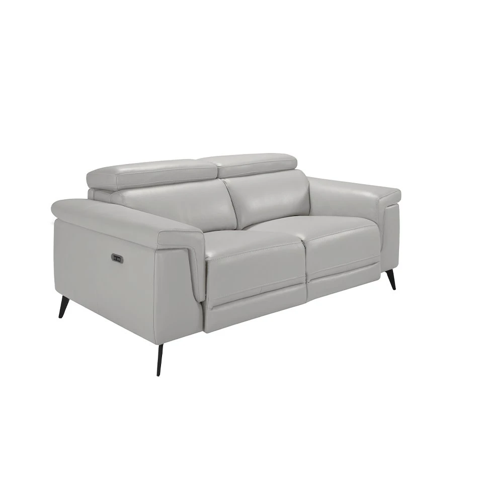 Sofá 2 plazas tapizado piel vacuno modelo 6107 Angel Cerdá S.L.Sofá 2 plazas de diseño moderno tapizado en piel de origen vacuno color gris de 1mm de espesor con reposabrazos y reposacabezas articulados independientes. Un sofá de estilo vanguardista y actual, con una robusta estructura interna de madera de pino natural y patas de acero macizo pintado en epoxi negro, que le otorga ese toque de tendencia y elegancia que buscas para tu salón. Su respaldo y asiento de espuma de poliuretano de 20kg/m3, así como sus dos mecanismos eléctricos de relax, le aporta ese extra de comodidad que necesitas para relajarte.• ESTILO: Este original sofá 2 plazas tapizado en piel de origen vacuno de la más alta calidad aportará el toque original y personal que buscas para tu hogar.• MULTIESTANCIA: Versátil y funcional, su diseño con reposabrazos permite que encaje en cualquier tipo de salón, convirtiéndose en el gran protagonista de la sala.• CALIDAD: Todos nuestros sofás están fabricados con materiales de la más alta calidad, siendo garantía de mobiliario duradero y funcional.• DECORACIÓN: Por su diseño original combinando tonalidades cálidas como la de su piel vacuno y el acero tintado epoxi color negro en sus patas, lo convierten en un sofá perfecto para aportar el equilibrio perfecto entre estilo y comodidad.• CONFORT: El tamaño de sus asientos y su relleno en espuma de poliuretano de 20kg/m3, así como sus dos mecanismos relax y reposacabezas articulados independientes, te permitirá contar con el máximo confort, sin dejar de lado la más alta tendencia.