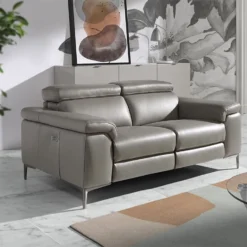 Sofá 3 plazas tapizado piel vacuno modelo 6108 Angel Cerdá S.L.Sofá 3 plazas de diseño moderno tapizado en piel de origen vacuno color gris de 1mm de espesor con reposabrazos y reposacabezas articulados independientes. Un sofá de estilo vanguardista y actual, con una robusta estructura interna de madera de pino natural y patas de acero macizo pintado en epoxi negro, que le otorga ese toque de tendencia y elegancia que buscas para tu salón. Su respaldo y asiento de espuma de poliuretano de 20kg/m3, así como sus dos mecanismos eléctricos de relax, le aporta ese extra de comodidad que necesitas para relajarte.• ESTILO: Este original sofá 3 plazas tapizado en piel de origen vacuno de la más alta calidad aportará el toque original y personal que buscas para tu hogar.• MULTIESTANCIA: Versátil y funcional, su diseño con reposabrazos permite que encaje en cualquier tipo de salón, convirtiéndose en el gran protagonista de la sala.• CALIDAD: Todos nuestros sofás están fabricados con materiales de la más alta calidad, siendo garantía de mobiliario duradero y funcional.• DECORACIÓN: Por su diseño original combinando tonalidades cálidas como la de su piel vacuno y el acero tintado epoxi color negro en sus patas, lo convierten en un sofá perfecto para aportar el equilibrio perfecto entre estilo y comodidad.• CONFORT: El tamaño de sus asientos y su relleno en espuma de poliuretano de 20kg/m3, así como sus dos mecanismos relax y reposacabezas articulados independientes, te permitirá contar con el máximo confort, sin dejar de lado la más alta tendencia.
