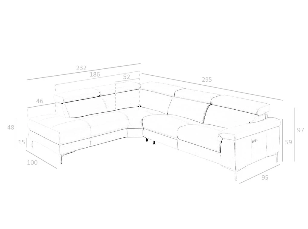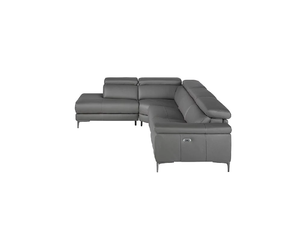 Sofá rinconera tapizado en piel cuero gris modelo 6112 Angel Cerdá S.L. Sofá rinconera de diseño moderno tapizado en piel vacuno de 1mm de espesor color cuero gris con reposacabezas independientes regulables. Un rinconero de estilo minimalista y único, con una robusta estructura interna de madera de pino natural y patas de acero tintado epoxi color negro que le otorga ese toque de tendencia y elegancia que buscas para tu salón. Su asiento lateral con mecanismo eléctrico de relax, le aporta ese extra de comodidad que necesitas para disfrutar de tu momento de tranquilidad. La combinación perfecta entre diseño, elegancia y confort. Sofá rinconera izquerda. • ESTILO: Este sofá rinconera tapizado en piel de origen vacuno color cuero gris de la más alta calidad aportará el toque original y elegante que buscas para tu hogar, fiel a las últimas tendencias en decoración. • MULTIESTANCIA: Versátil y funcional, su elegante y sencillo diseño permite que encaje en cualquier tipo de salón, convirtiéndose en el gran protagonista de la sala. • CALIDAD: Todos nuestros sofás están fabricados con materiales de la más alta calidad, siendo garantía de mobiliario duradero y funcional. • DECORACIÓN: Gracias a su elegante diseño moderno con acabado del chaise longue a derecha, así como a la combinación de la piel con sus patas en acero tintado epoxi color negro, conseguirás el toque de vanguardia y sofisticado que buscas para tu sala de estar, a la vez que la mayor comodidad. • CONFORT: El tamaño de sus asientos y su relleno en espuma de 20kg/m3, así como sus reposacabezas independientes regulables y asiento lateral con mecanismo eléctrico de relax, te permitirá contar con el máximo confort, sin dejar de lado la más alta tendencia.