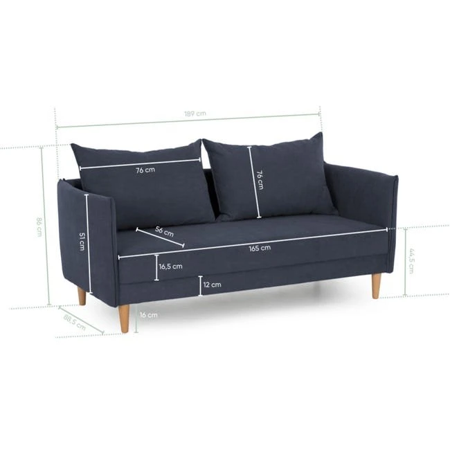 El sofá Melanie es la forma perfecta de relajarse después de un largo día. Es elegante y moderno, con un diseño único que destaca en cualquier habitación. La combinación de comodidad y estética lo hace perfecto para relajarse y desconectar. Los amplios cojines del respaldo se pueden ajustar para conseguir la mejor postura, mientras que la delgada estructura y los brazos curvados le dan un aspecto moderno. Los delgados brazos también maximizan la superficie de asiento, ofreciéndole mucho espacio para sentarse cómodamente. Además, los mullidos cojines del respaldo y el asiento garantizan un confort óptimo. Ya sea para ver la tele, leer un libro o tomarse un descanso, el sofá Melanie es el lugar perfecto para relajarse.- TEXTIL: Selección de tejido 100% poliéster de alta calidad con un tacto delicado y suave. Es muy transpirable y resistente a la decoloración, el desgaste y los arañazos.- ROBUSTO Y DURADERO: La estructura de madera no se deforma ni se agrieta fácilmente tras rigurosas pruebas de resistencia. Su núcleo está formado por una firme estructura de madera y sólidos muelles. – CONFORT Y SOPORTE: Este cómodo sofá ergonómico de 3 plazas tiene líneas sencillas y un respaldo de alta calidad con cojines sueltos, lo que le permite adaptarse totalmente a su postura. El cómodo asiento está compuesto por espuma de alta densidad y muelles de amplia gama para adaptarse perfectamente a su cuerpo. – PRÁCTICO: Además de un tejido fácil de limpiar, los cojines son extraíbles para limpiar el polvo acumulado y las patas altas permiten que la aspiradora haga su trabajo sin problemas. – COMPACTA Y FÁCIL DE MONTAR: Sus delgados brazos liberan espacio para maximizar la zona de confort. Una sola persona sólo necesita 10 minutos para montar todo el sofá de forma independiente.