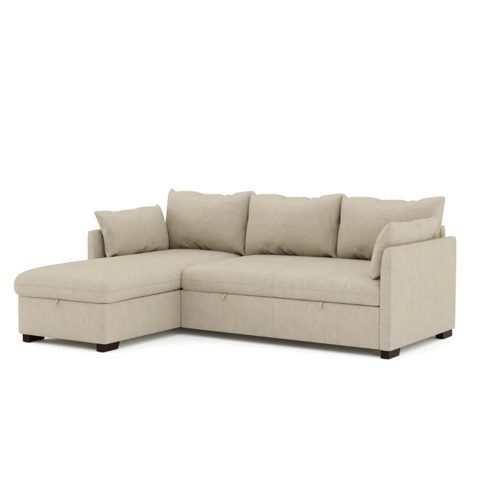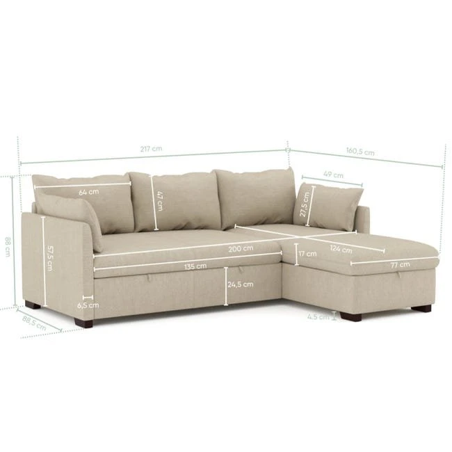 El sofá Orlando, de 3 ó 4 plazas, es un sofá cama versátil y práctico de diseño moderno. Su chaise longue es reversible, y puede colocarse tanto a la derecha como a la izquierda. Tiene una cama extensible y espacio de almacenamiento en la chaise longue, perfecto para guardar mantas u otros objetos. Los cojines del respaldo están sueltos y viene con dos cojines extra.- Chaise longue reversible con espacio de almacenamiento en el interior, perfecta para relajarse y guardar objetos.- Cuenta con una cama grande, cómoda y fácil de convertir, ideal para recibir invitados en casa o simplemente para relajarse.- El revestimiento de tela garantiza suavidad al tacto, y es de excelente calidad y fácil mantenimiento.