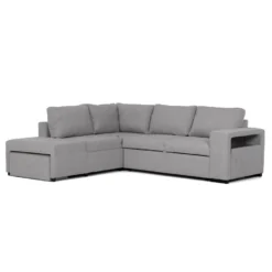 El sofá Zurie, de 4 ó 5 plazas, es un sofá cama en L versátil y práctico, de diseño moderno. Su esquina es reversible, puede colocarse tanto a la derecha como a la izquierda. Dispone de una extensión de cama, almacenamiento en la chaise longue, almacenamiento lateral y un puf ideal para añadir asientos. – Rincón reversible con espacio de almacenamiento en el interior, perfecto para relajarse y guardar objetos. Almacenamiento lateral complementario, ideal para guardar cojines u otros objetos.- Cuenta con una cama grande, cómoda y fácil de convertir, ideal para recibir invitados en casa o simplemente para relajarse.- Asiento extra con el puf que viene incluido, ideal para recibir a todos tus invitados, o descansar las piernas.