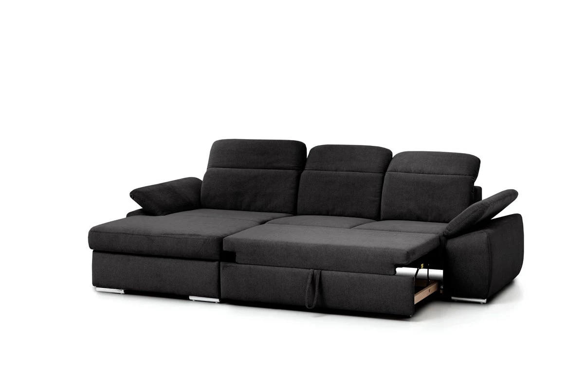 «No te puedes perder este Chaise longue con cama MORIS izquierda color Marrón, se trata de un sofá de 3 plazas de 209 x 123 cm, con arcón, revestimiento 100% poliéster y estructura de madera dura y madera contrachapada.