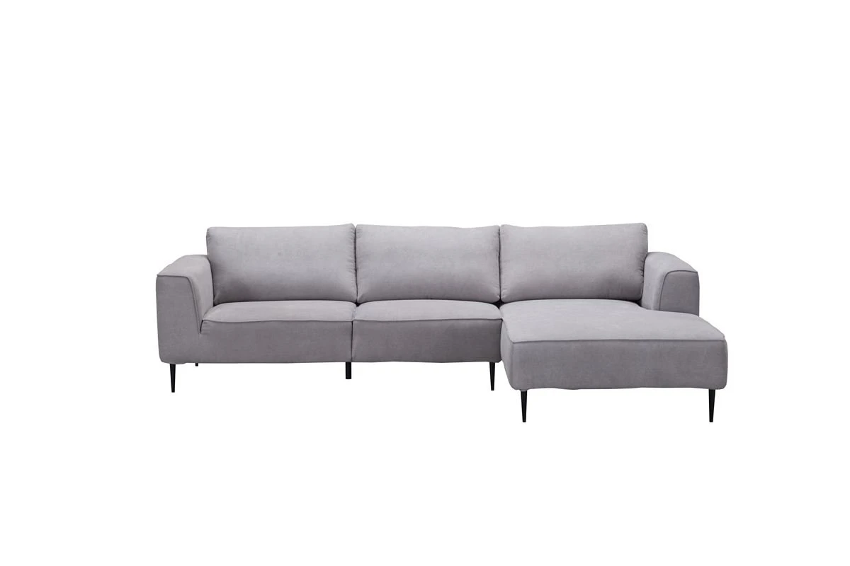 Chaise Longue derecha AMELIE, tiene una estructura de madera de pino y madera contrachapada, tipo de suspensión muelles de metal + cincha. Densidad de espuma en asientos de 30 kg/m3.