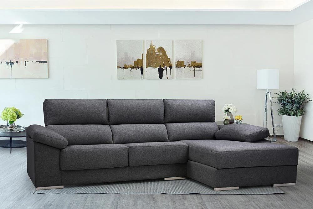 Con esta chaise longue NOEMI, desde luego, no te va a faltar sitio. En sus casi 3 metros de anchura podrás vivir tus momentos en familia o con amigos asegurándote de que todos tengáis vuestro espacio y estéis a las anchas.Un mullido y confortable tapizado en tela te espera para que descanses a gusto sentado o aprovechando su chaise. No te sientas culpable por esas cabezaditas o pequeñas siestas: caerás rendido irresistiblemente al relax más absoluto si te recostas en ella.Además, tienes el extra de sus cabezales reclinables y asientos deslizantes, para que encuentres siempre la mejor posición a la hora de sentarte y dejes bien relajadas las cervicales. La chaise longue NOEMI es un paraíso para tu descanso.