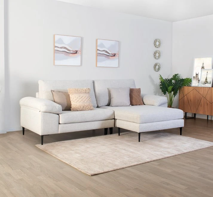 ¿ Acostado, sentado o estirado ? No importa, con el chaise longue fija KATA puedes ponerte como te apetezca. Sus firmes respaldos harán mas llevaderas tus maratones de series mientras disfrutas de tus aperitivos favoritos.