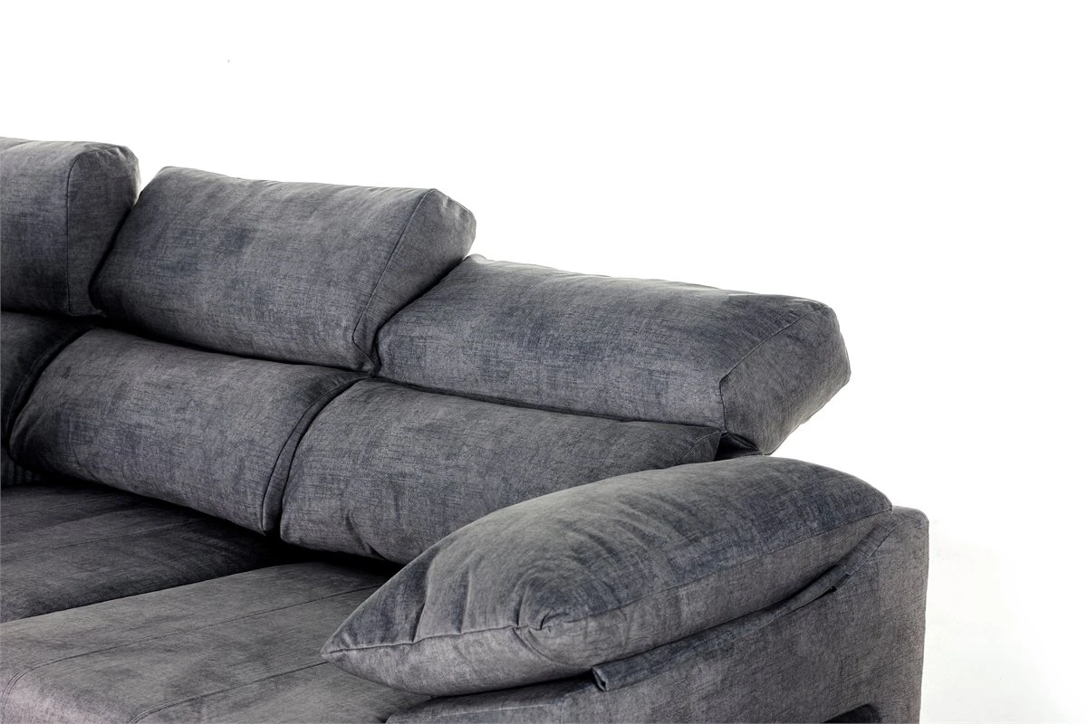Prepárese para experimentar la máxima comodidad y lujo con el Chaise longue DANIELA 2 color antracita y de posicion izquierda. Cuenta con asientos deslizantes ajustables y dos cabezales reclinables para una máxima relajación. Con un puf que funciona como asiento adicional y almacenamiento, ¡vivirás en un lujo maravilloso! Con diseños ergonómicos y una estética moderna, seguro que disfrutarás de tu tiempo libre con estilo. ¡Prepárate para relajarte con estilo!