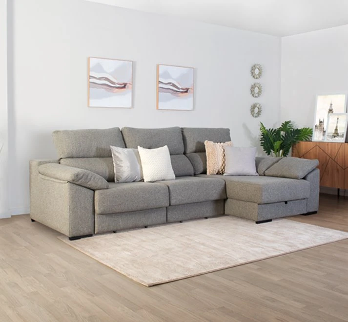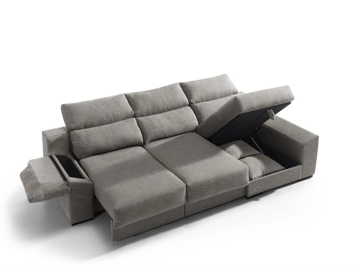 deslizantes. Cabezales reclinables, Chaise Longue con arcón ybrazo sofá con