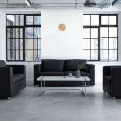 Conjunto de sofás. Añade a tu interior este conjunto de sala de estar de diseño moderno. Está fabricado a partir de piel en todas las superficies de asiento, incluido el respaldo y los reposabrazos. La piel sintética está presente en los laterales y en la parte posterior. El acolchado del asiento ofrece la máxima comodidad. La estructura de madera resistente y las patas de metal garantizan estabilidad. Los cojines adicionales vienen con fundas extraíbles. Detalles: Tipo de Producto: Conjunto de sofás Estilo: Industrial Color: Negro Tipo de material: Piel genuina Material principal: Piel Material adicional: Piel sintética Material del relleno: Espuma Composición del Material: 100% Tela de PVC Estilo del apoyabrazo: Estrecho Parte posterior tapizada: Sí Construcción del asiento: Muelles ondulados Densidad de espuma del asiento: 25 kg/m3 Asientos para: 4 – 6 personas Dimensiones: Dimensiones del sofá de 2 plazas: 152x76x72 Dimensiones del sofá de 3 plazas: 186x76x72 Dimensiones del sillón: 96x76x72 Espesor del asiento: 12 cm Altura del asiento: 41 cm Peso: 113 kg Capacidad de peso por persona: 150 kg La oferta incluye: 1 x Sofá de 2 plazas, 1 x Sofá de 3 plazas, 1 x Sillón Ventajas: Acolchado grueso, Diseño moderno, Materiales de calidad, Fabricación sólida y precisa, Muchas posibilidades de posición, Fundas extraíbles Información de montaje: Requiere montaje parcial. 45-60 min. Información adicional: Todas las superficies de contacto (asientos y cojines están hechas de 100% cuero vacuno, las otras partes están hechas de cuero artificial de alta calidad. Consejos de mantenimiento: Piel: 1.Trate la superficie con un protector de cuero antes de la temporada de invierno. No use quitamanchas, trementina, betún o cualquier tipo de grasa. Los limpiadores abrasivos pueden dejar manchas u oscurecer el cuero 2.Una vez a la semana, limpie con un paño de algodón; una vez al mes limpie con agua y luego seque 3.No use limpiadores abrasivos ya que pueden dañar el material. Evite la fricción fuerte ya que podría dejar rasguños en la superficie 4.El calor y la luz solar hacen que el cuero se seque y pierda color. Manténgalo alejado de la luz solar directa o del radiador 5.Las manchas pequeñas se pueden eliminar con un borrador no teñido. Use un limpiador suave en manchas difíciles. Para las manchas de grasa use vinagre. Piel sintética: 1.Limpie con agua destilada y use limpiadores a base de jabón en las manchas difíciles 2.Aspire con un accesorio adecuado 3.Una vez a la semana, limpie con un paño húmedo y seque después. No engrasar, 4.Use solo limpiadores suaves y acondicionadores dedicados a la piel sintética