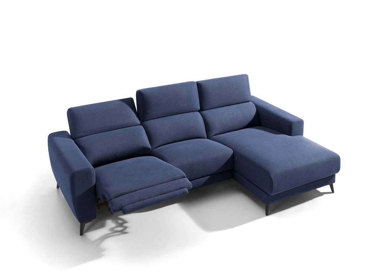DRAX CHAISE LONGUE RELAX AZUL DERECHO TELA. MOTORIZADO CABEZAL RECLINABLE