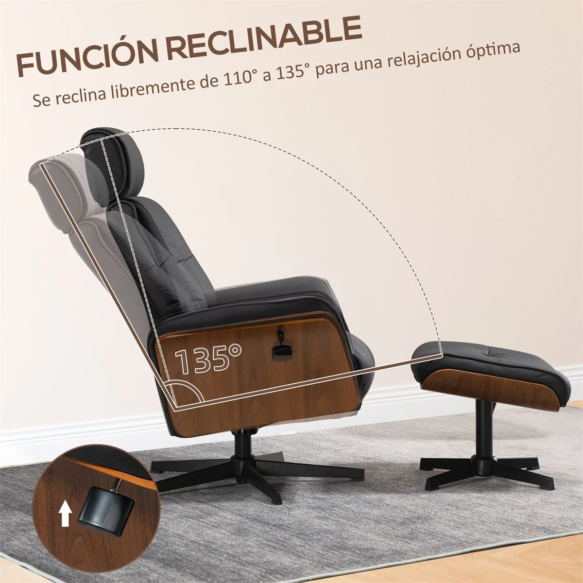 - – Butaca reclinable con reposapiés, ideal para tener en tu sala de estar, dormitorio y más