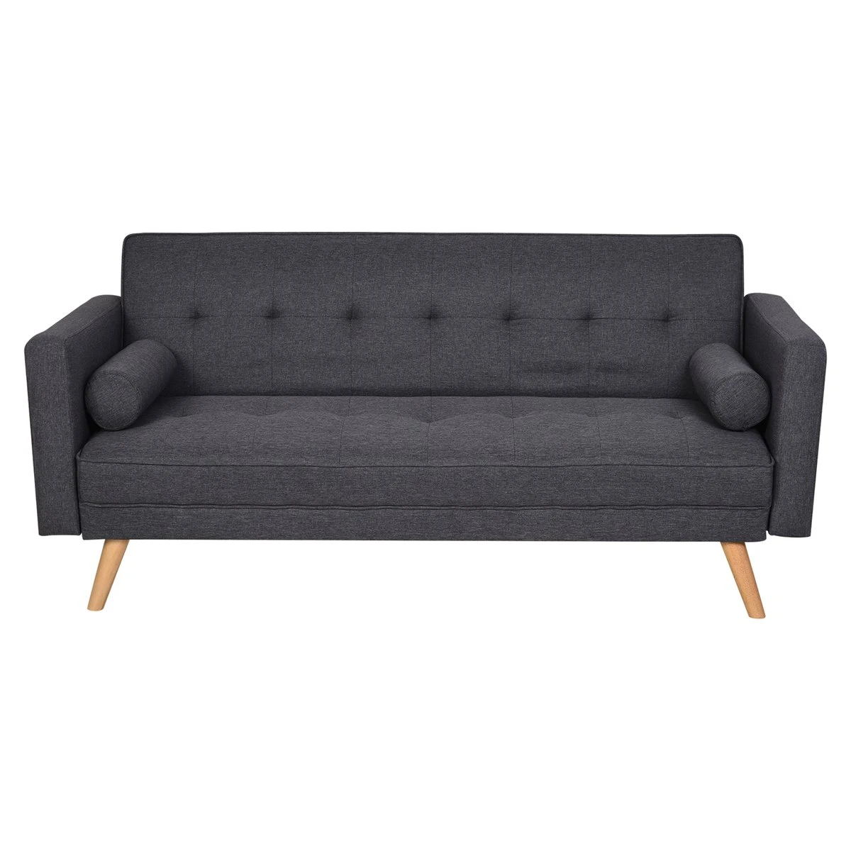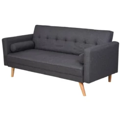 - – SOFÁ CAMA ESTILO VINTAGE: perfecto para decorar tu salón, ofrecerte un gran espacio de descanso para 3 personas y además una cama individual. – RESPALDO AJUSTABLE: ideal para conseguir la postura más cómoda en cada momento. Su respaldo se reclina en 105°, 155° y 180°. – PRÁCTICOS REPOSABRAZOS: sus reposabrazos altos ofrecen un apoyo óptimo. – COJINES CIRCULARES: con el sofá vienen 2 cojines regulares que le darán el último toque decorativo al conjunto, pero que además te resultarán súper cómodos. – MEDIDAS: El sofá mide 187x90x86,5 cm (LxANxAL. La cama mide 163x105x66 cm (LxANxAL. Soporta un máximo total de 300 kg de peso.