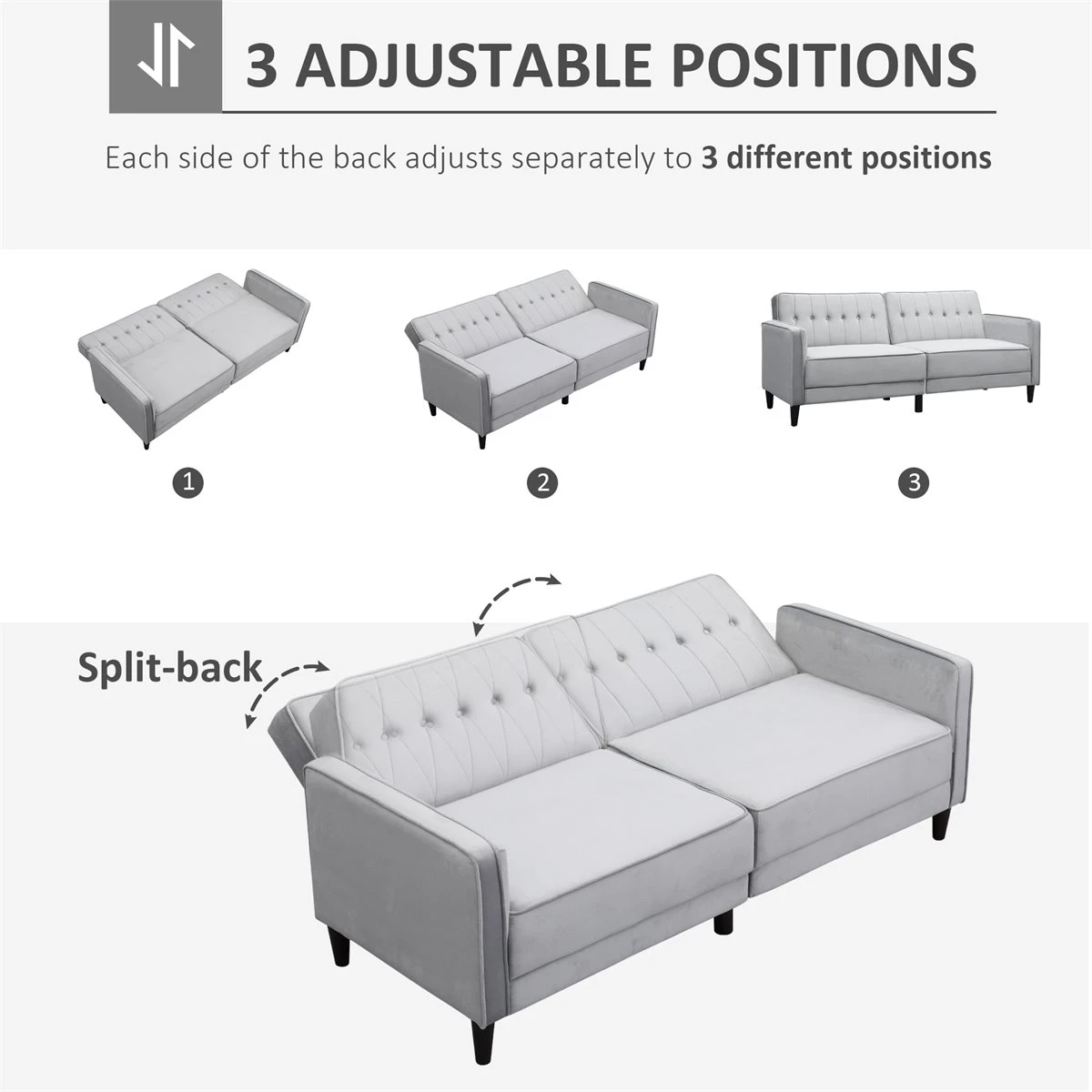 A todos nos gustan los muebles para el hogar que cumplen una doble función. Especialmente a aquellos que viven en espacios pequeños, como puede ser un loft, estudio o un piso de no muchos metros cuadrados. Este sofá de HOMCOM es una gran solución en estos casos o si estás buscando también un espacio dónde puedan dormir tus invitados. Acolchado y tapizado en agradable tela de terciopelo, cuenta con un respaldo de 2 partes que se puede reclinar en 3 posiciones diferentes por separado.
