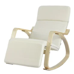 capacidad de carga: 120 kg, Peso:10 kg Reposapiernas ajustable a cinco niveles., Tacto agradable – Cubierta de la mecedora está hecha de algodón 100%, con tacto agradable y transpirable Mayor comodidad gracias a una capa gruesa de relleno adicional. Incluye un cojín donde se reposa la cabeza. Estructura estable y flexible de madera de abedul y acero.