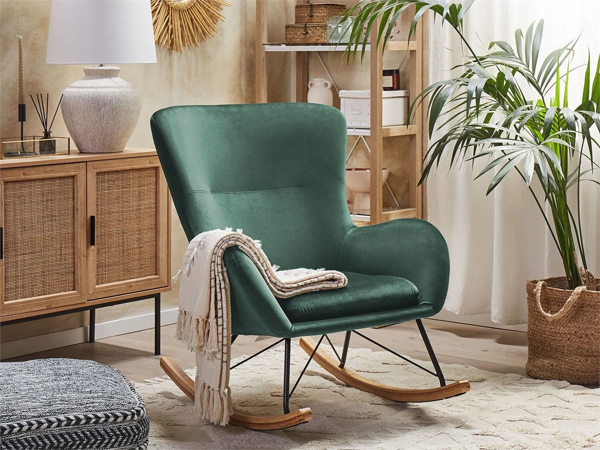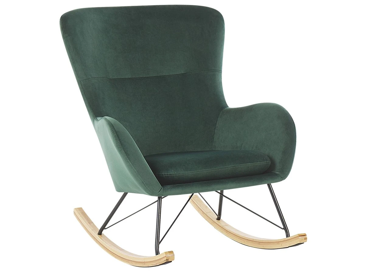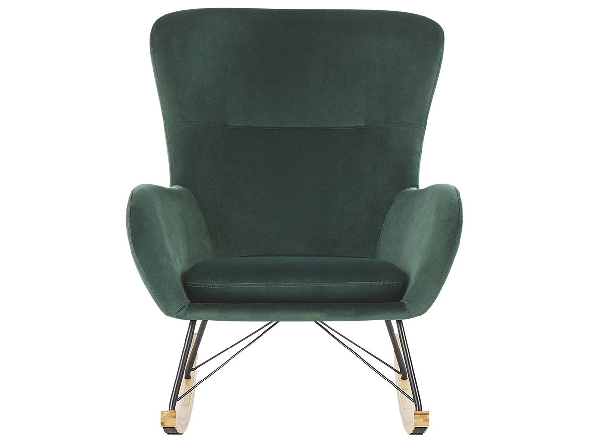 Sillón de diseño moderno. Esta silla mecedora de diseño glamuroso complementa a la perfección la decoración de cualquier interior moderno o tradicional. Está fabricada a partir de tela de terciopelo de fácil mantenimiento. Los 2 patines de madera maciza ofrecen un balanceo suave. Combina bien junto a una chimenea o en una sala de estar. Detalles: Tipo de Producto: Silla mecedora Estilo: Retro Color: Verde Tonalidad: Verde oscuro Tipo de material: Poliéster aterciopelado Material principal: Terciopelo Material adicional: Metal Material del relleno: Espuma Material de las patas: Metal Material del asiento: Poliéster aterciopelado Composición del Material: 100% Poliéster Estilo del apoyabrazo: Redondeado Apoyabrazo: Sí Protectores para patas: No Diseño: Sólido Reclinable: No Construcción del asiento: Madera contrachapada Densidad de espuma del asiento: 24 kg/m3 Dimensiones: Altura del apoyabrazos: 77 cm Profundidad: 90 cm Espesor del asiento: 10 cm Altura del asiento: 49 cm Ancho: 71 cm Altura: 97 cm Superficie del asiento: 48×40 cm Peso: 14 kg Capacidad de peso: 150 kg La oferta incluye: 1 x Sillón Ventajas: Agradable función de balanceo, Cómodos apoyabrazos, Crea un ambiente acogedor, Combina con cualquier estilo de interior, Acolchado de alta calidad, Solida estructura Información de montaje: Requiere montaje de las patas. 20-40 min. Información adicional: Para una mayor estabilidad y seguridad de uso, se recomienda verificar 2 semanas después de la instalación que el montaje del producto ha sido realizado de forma correcta. Revisa, al menos una vez cada 3 meses, que los tornillos estén bien apretados. Ten en cuenta que la tela de terciopelo puede presentar un aspecto distinto según la iluminación a la que esté expuesta: tiende a brillar más a la luz del día y a parecer más tenue con luz artificial en interiores. Debido a la estructura suave de alta densidad, la tonalidad puede verse modificada haciendo pasar la mano en distintas direcciones y ángulos. Para igualar el color y eliminar las arrugas, el material debe limpiarse con la palma de mano abierta en una dirección, con un paño húmedo o una plancha con vapor. Consejos de mantenimiento: Terciopelo: 1.Aspire con un accesorio adecuado 2.Limpiar con champú seco y una esponja húmeda o un limpiador suave. Metal: 1.Limpie con un limpiador y un paño suave, seque después 2.Para elementos de cobre o cromados, use agente abrillantador 3.Para evitar arañazos, no use limpiadores abrasivos.