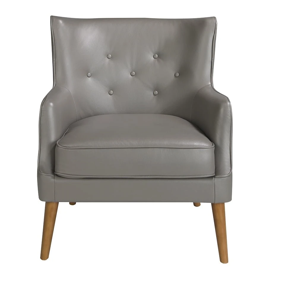 Sillón confidente tapizado piel modelo 5085 Angel Cerdá S.L. Sillón confidente de diseño moderno tapizado en piel de origen vacuno color gris oscuro con respaldo capitoné. Un sillón de tendencia perfecto para su zona de descanso y relax, con asiento relleno de espuma de poliuretano de 25kg/m3 de densidad. Su estructura de patas en madera maciza de fresno en color nogal, aportará ese toque de vanguardia y elegancia que buscas para su hogar. La combinación perfecta entre diseño y confort. • ESTILO: Este sillón tapizado en piel aportará el toque original y elegante que busca para su hogar, fiel a las últimas tendencias en decoración. • MULTIESTANCIA: Versátil y funcional, su elegante y sencillo diseño permite que encaje en cualquier tipo de salón, zona de lectura o dormitorio, convirtiéndose en el gran protagonista de la sala. • CALIDAD: Todos nuestros sillones están fabricados con materiales de la más alta calidad, siendo garantía de mobiliario duradero y funcional. • DECORACIÓN: Gracias a su elegante diseño moderno, así como a la combinación de la piel con la madera de nogal, conseguirá el toque cálido y sofisticado que busca para su sala de estar. • CONFORT: El tamaño de su asiento envolvente y su relleno en espuma de 25kg/m3, le permitirá contar con el máximo confort, sin dejar de lado la más alta tendencia.