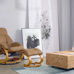 Sillón de descanso. Añade a tu zona de descanso este sillón de masaje. Está fabricado a partir de piel sintética de alta calidad. El reposapiés y la función de calefacción proporcionan el máximo confort. El mando a distancia permite elegir entre 5 configuraciones y 2 modos de intensidad de masaje. Detalles: Tipo de Producto: Sillón de masaje Estilo: Retro Color: Beige Tonalidad: Arena Tipo de material: Piel sintética Material principal: Piel sintética Material adicional: Poliéster Material de las patas: Madera maciza Material del asiento: Piel sintética Composición del Material: 100% Piel ecológica Funciones adicionales: Función de masaje Apoyabrazo: Sí Reposapies: No Reclinable: Sí Construcción del asiento: Bandas elásticas Dimensiones: Altura del apoyabrazos: 57 cm Profundidad: 80 cm Dimensiones del reposapies: 48x37x44 cm Altura del asiento: 45 cm Ancho: 55 cm Altura: 100 cm Superficie del asiento: 49×53 cm Peso: 22 kg Capacidad de peso: 150 kg La oferta incluye: 1 x Sillón con función de masaje, 1 x Taburete Ventajas: 5 Programas, Función de calentamiento para el máximo confort, Giratoria 360°, Incluye un taburete cómodo, Práctico reposapiés, Brinda sensaciones de relax, Respaldo acogedor y reclinable, Cómodos apoyabrazos, Muy fácil de conservar Información de montaje: Requiere montaje completo. 45-60 min. Información adicional: Para una mayor estabilidad y seguridad de uso, se recomienda verificar 2 semanas después de la instalación que el montaje del producto ha sido realizado de forma correcta. Revisa, al menos una vez cada 3 meses, que los tornillos estén bien apretados. Consejos de mantenimiento: Piel sintética: 1.Use solo limpiadores suaves y acondicionadores dedicados a la piel sintética, 2.Limpie con agua destilada y use limpiadores a base de jabón en las manchas difíciles 3.Aspire con un accesorio adecuado 4.Una vez a la semana, limpie con un paño húmedo y seque después. No engrasar Madera: 1.Seque inmediatamente después de limpiar. para evitar que se acumule agua en los muebles 2.Limpie con un limpiador y un paño suave en la dirección del grano 3.Los muebles con acabado de aceite deben engrasarse una vez al año