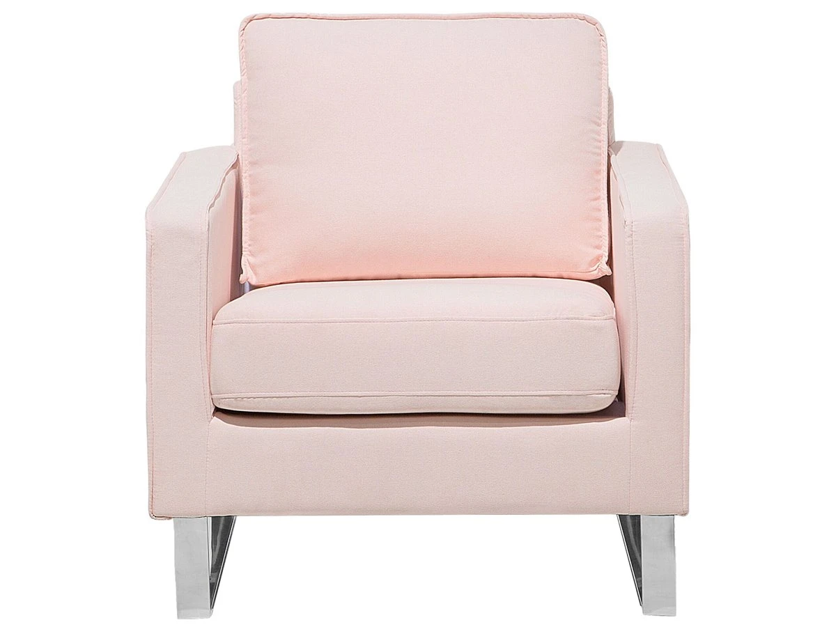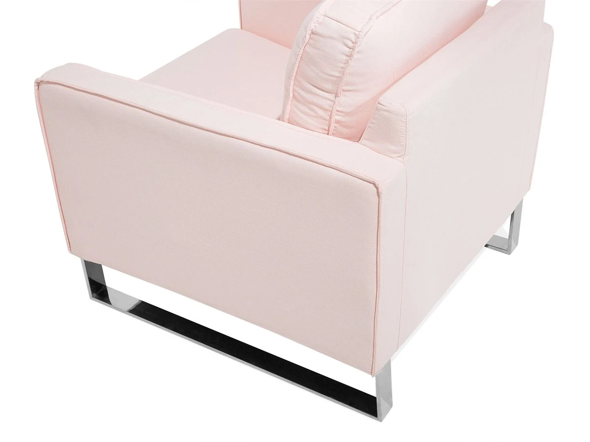 Sillón de descanso. Añade a tu sala de estar, dormitorio u oficina en casa este sillón decorativo. Está fabricado a partir de tela de poliéster de alta calidad y suave al tacto. El asiento ancho y los cojines de acolchado grueso ofrecen la máxima comodidad. La base de metal combina bien en cualquier interior de estilo minimalista o ecléctico. Detalles: Tipo de Producto: Sillón Estilo: Glamour Color: Rosa Tipo de material: Tejido Material principal: Poliéster Material adicional: Acero inoxidable Material del relleno: Espuma Material de las patas: Acero Material del asiento: Tejido Composición del Material: 100% Poliéster Estilo del apoyabrazo: Estrecho Apoyabrazo: Sí Protectores para patas: No Diseño: Sólido Reclinable: No Construcción del asiento: Muelles ondulados Densidad de espuma del asiento: 24 kg/m3 Dimensiones: Altura del apoyabrazos: 62 cm Profundidad: 82 cm Espesor del asiento: 11 cm Altura del asiento: 44 cm Ancho: 76 cm Altura: 82 cm Superficie del asiento: 60×48 cm Peso: 23 kg Capacidad de peso: 200 kg La oferta incluye: 1 x Sillón Ventajas: Confort del asiento óptimo, Diseño tradicional con un toque moderno, Combina con cualquier estilo de interior, Acolchado de alta calidad, Fundas extraíbles Información de montaje: Requiere montaje completo. 20-40 min. Información adicional: Para una mayor estabilidad y seguridad de uso, se recomienda verificar 2 semanas después de la instalación que el montaje del producto ha sido realizado de forma correcta. Revisa, al menos una vez cada 3 meses, que los tornillos estén bien apretados. Consejos de mantenimiento: Poliéster: 1.Aspire con un accesorio adecuado 2.Limpiar con champú seco y una esponja húmeda o un limpiador suave. Acero inoxidable: 1.Para elementos de cobre o cromados, use agente abrillantador 2.Para evitar arañazos, no use limpiadores abrasivos 3.Limpie con un limpiador y un paño suave, seque después.