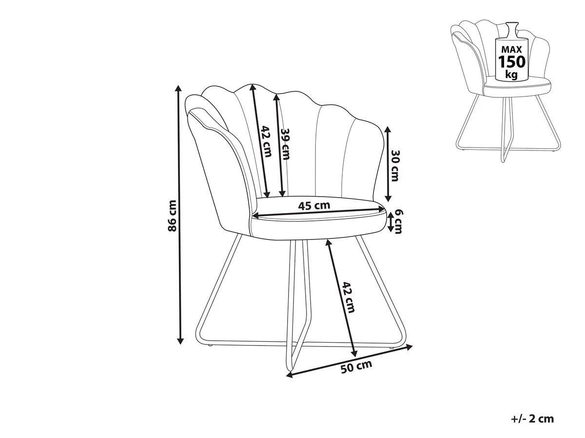 Sillón de diseño retro. Añade un toque retro a tu sala de estar con este sillón. Está fabricado a partir de tela de terciopelo resistente y suave al tacto. El asiento redondo y el respaldo en forma de concha atraen las miradas de los invitados. Combina bien en cualquier interior de estilo moderno o retro. Detalles: Tipo de Producto: Sillón Estilo: Retro Color: Azul Tonalidad: Azul marino Tipo de material: Poliéster aterciopelado Material principal: Terciopelo Material adicional: Madera contrachapada Material del relleno: Espuma Material de las patas: Metal Material del asiento: Poliéster aterciopelado Composición del Material: 100% Poliéster Estilo del apoyabrazo: Sin reposabrazos Apoyabrazo: No Protectores para patas: Sí Diseño: Sólido Reclinable: No Construcción del asiento: Madera Densidad de espuma del asiento: 25 kg/m3 Dimensiones: Profundidad: 70 cm Espesor del asiento: 6 cm Altura del asiento: 48 cm Ancho: 67 cm Altura: 86 cm Superficie del asiento: 45×48 cm Peso: 8 kg Capacidad de peso: 150 kg La oferta incluye: 1 x Sillón Ventajas: Brinda sensaciones de relax, Estilo retro, Brinda un toque moderno a cualquier interior, Tejido aterciopelado suave como la seda, Materiales de la más alta calidad Información de montaje: Requiere montaje de las patas. 5-15 min. Información adicional: Ten en cuenta que la tela de terciopelo puede presentar un aspecto distinto según la iluminación a la que esté expuesta: tiende a brillar más a la luz del día y a parecer más tenue con luz artificial en interiores. Debido a la estructura suave de alta densidad, la tonalidad puede verse modificada haciendo pasar la mano en distintas direcciones y ángulos. Para igualar el color y eliminar las arrugas, el material debe limpiarse con la palma de mano abierta en una dirección, con un paño húmedo o una plancha con vapor. Consejos de mantenimiento: Terciopelo: 1.Aspire con un accesorio adecuado 2.Limpiar con champú seco y una esponja húmeda o un limpiador suave. Metal: 1.Para elementos de cobre o cromados, use agente abrillantador 2.Para evitar arañazos, no use limpiadores abrasivos 3.Limpie con un limpiador y un paño suave, seque después.