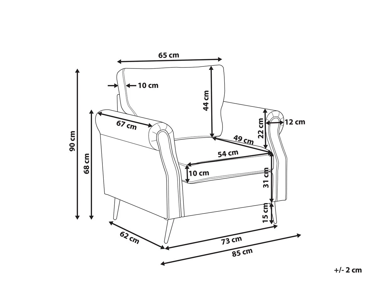 Sillón de estilo glamuroso. Añade un toque retro a tu sala de estar con este sillón decorativo. Está fabricado a partir de tela de terciopelo brillante y suave al tacto. La construcción en madera garantiza estabilidad y durabilidad. Los cojines de acolchado grueso ofrecen la máxima comodidad. Combina bien en cualquier interior de estilo moderno o tradicional. Detalles: Tipo de Producto: Sillón Estilo: Retro Color: Negro Tipo de material: Poliéster aterciopelado Material principal: Terciopelo Material adicional: Hierro Material del relleno: Espuma Material de las patas: Metal Material del asiento: Tejido Composición del Material: 100% Poliéster Estilo del apoyabrazo: Redondeado Apoyabrazo: Sí Protectores para patas: Sí Diseño: Sólido Reclinable: No Construcción del asiento: Bandas elásticas Densidad de espuma del asiento: 24 kg/m3 Dimensiones: Altura del apoyabrazos: 68 cm Profundidad: 67 cm Espesor del asiento: 10 cm Altura del asiento: 46 cm Ancho: 85 cm Altura: 90 cm Superficie del asiento: 54×49 cm Peso: 22 kg Capacidad de peso: 150 kg La oferta incluye: 1 x Sillón Ventajas: Ancha superficie del asiento, El grueso acolchado del asiento brinda comodidad, Estilo retro, Acolchado de alta calidad, No requiere mantenimiento regular Información de montaje: Requiere montaje completo. 5-15 min. Información adicional: Para una mayor estabilidad y seguridad de uso, se recomienda verificar 2 semanas después de la instalación que el montaje del producto ha sido realizado de forma correcta. Revisa, al menos una vez cada 3 meses, que los tornillos estén bien apretados. Ten en cuenta que la tela de terciopelo puede presentar un aspecto distinto según la iluminación a la que esté expuesta: tiende a brillar más a la luz del día y a parecer más tenue con luz artificial en interiores. Debido a la estructura suave de alta densidad, la tonalidad puede verse modificada haciendo pasar la mano en distintas direcciones y ángulos. Para igualar el color y eliminar las arrugas, el material debe limpiarse con la palma de mano abierta en una dirección, con un paño húmedo o una plancha con vapor. Consejos de mantenimiento: Terciopelo: 1.Aspire con un accesorio adecuado 2.Limpiar con champú seco y una esponja húmeda o un limpiador suave.