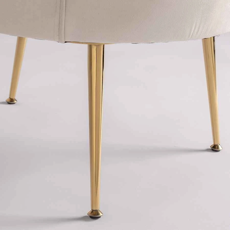 La acertada combinación del terciopelo blanco con las patas depuradas de metal cromado doradas realza maravillosamente su look contemporáneo.