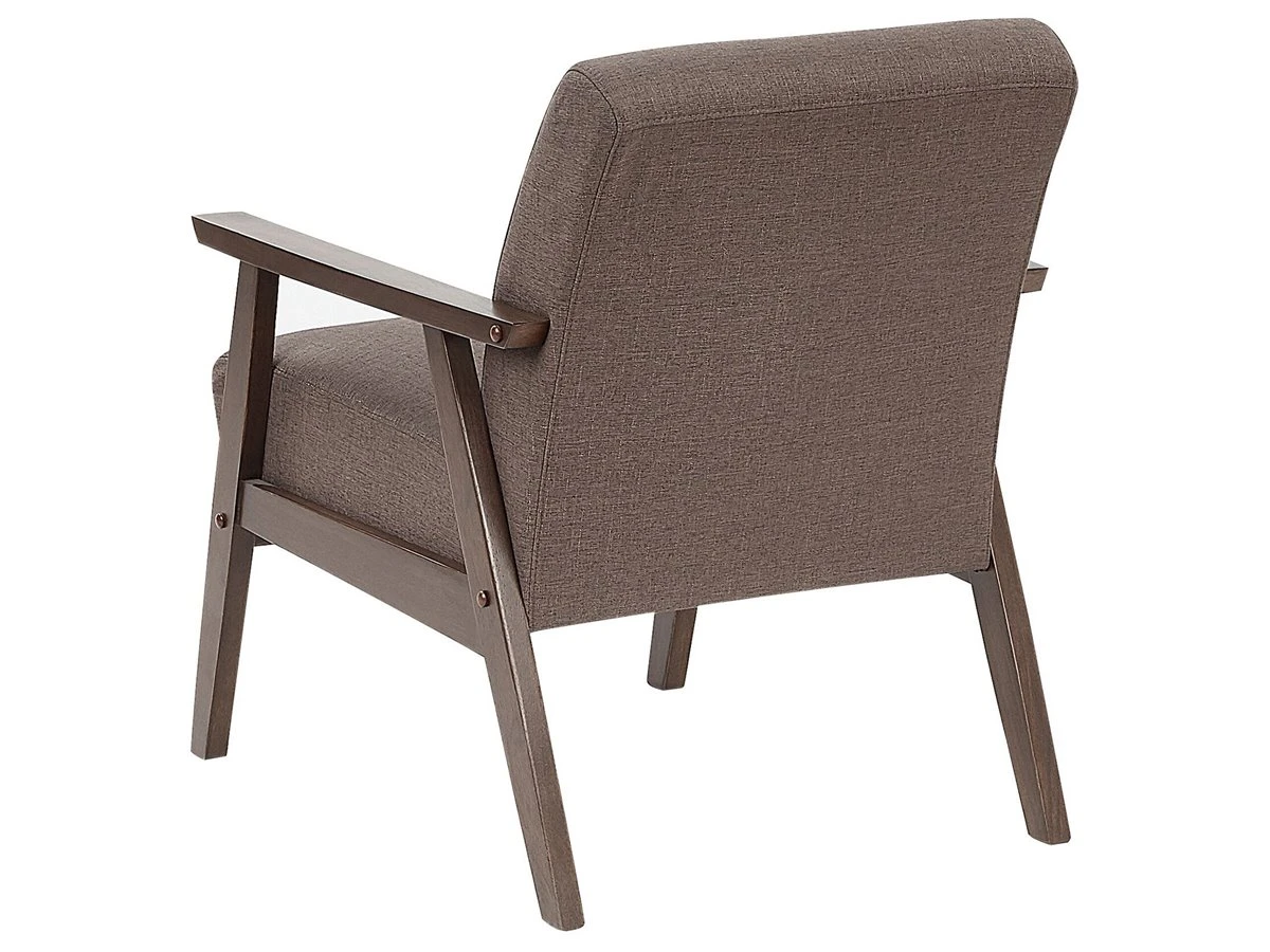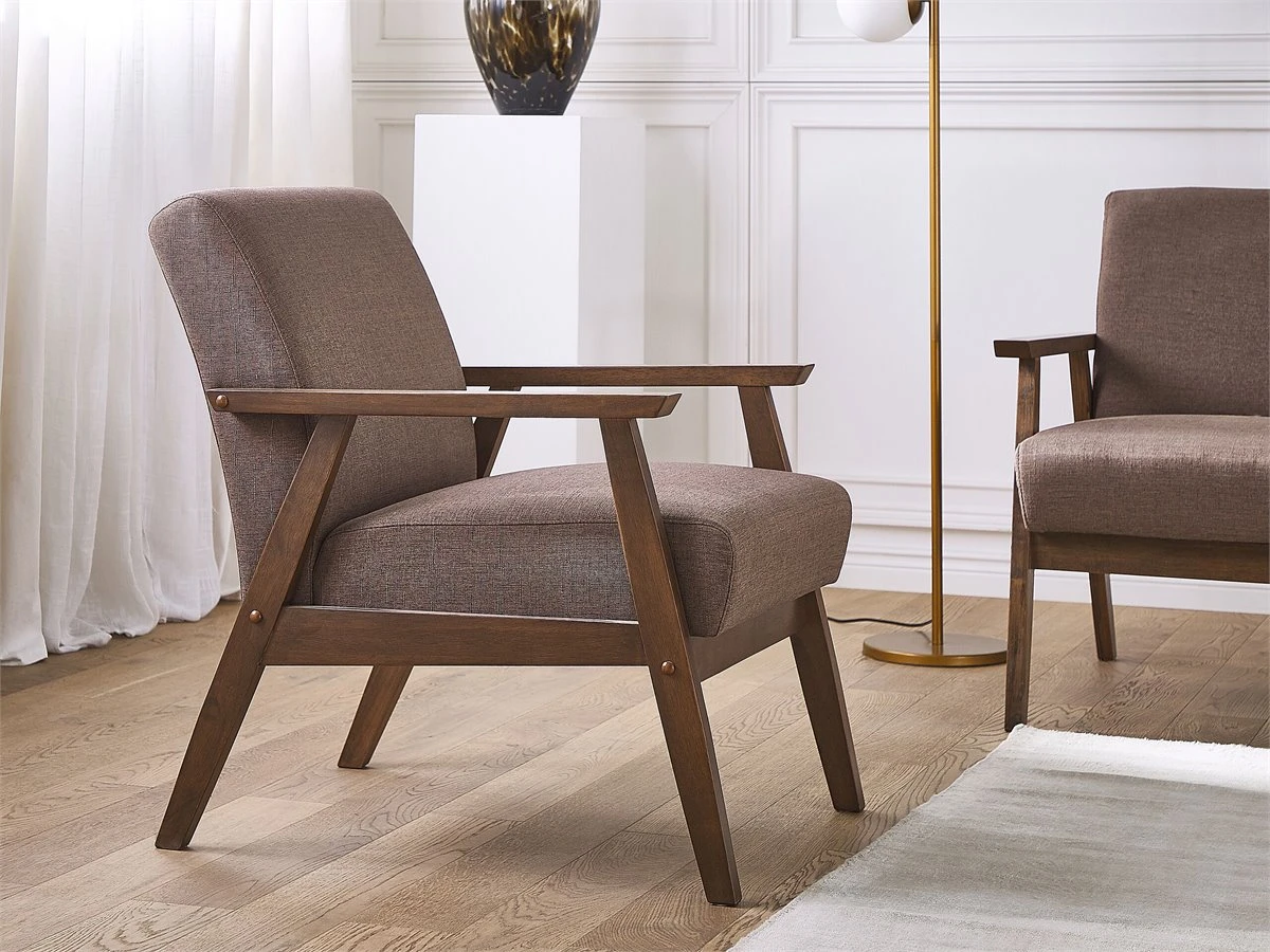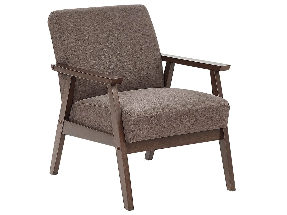 Sillón tapizado retro. Añade un toque retro a tu sala de estar o dormitorio con este sillón. Está fabricado a partir de tela de poliéster de alta calidad y suave al tacto. La estructura de madera garantiza la máxima estabilidad. Detalles: Tipo de Producto: Sillón Estilo: Retro Color: Marrón Tipo de material: Tejido Material principal: Poliéster Material adicional: Madera de caucho Material del relleno: Espuma Material de las patas: Madera maciza Material del asiento: Tejido Composición del Material: 100% Poliéster Estilo del apoyabrazo: Estrecho Apoyabrazo: Sí Protectores para patas: Sí Diseño: Sólido Reclinable: No Construcción del asiento: Muelles ondulados Densidad de espuma del asiento: 24 kg/m3 Dimensiones: Altura del apoyabrazos: 58 cm Profundidad: 62 cm Espesor del asiento: 18 cm Altura del asiento: 46 cm Ancho: 80 cm Altura: 80 cm Superficie del asiento: 52×50 cm Peso: 11 kg Capacidad de peso: 150 kg La oferta incluye: 1 x Sillón Ventajas: El grueso acolchado del asiento brinda comodidad, Estilo retro, Acolchado de alta calidad, Construcción muy estable, Patas con tapas anti-deslizantes Información de montaje: Requiere montaje completo. 20-40 min. Información adicional: Para una mayor estabilidad y seguridad de uso, se recomienda verificar 2 semanas después de la instalación que el montaje del producto ha sido realizado de forma correcta. Revisa, al menos una vez cada 3 meses, que los tornillos estén bien apretados. Consejos de mantenimiento: Poliéster: 1.Aspire con un accesorio adecuado 2.Limpiar con champú seco y una esponja húmeda o un limpiador suave. Madera maciza: 1.Seque inmediatamente después de limpiar. para evitar que se acumule agua en los muebles 2.Limpie con un limpiador y un paño suave en la dirección del grano 3.Los muebles con acabado de aceite deben engrasarse una vez al año