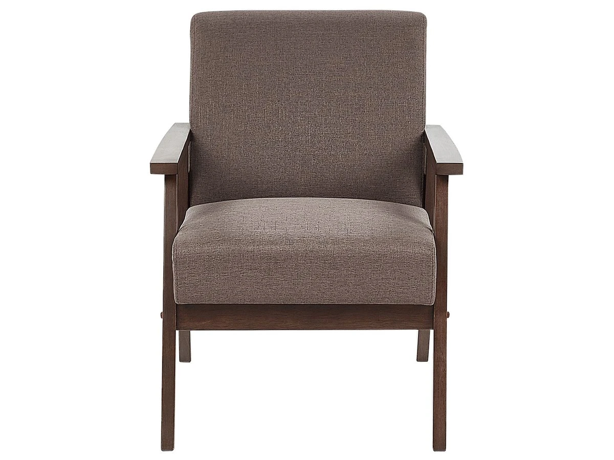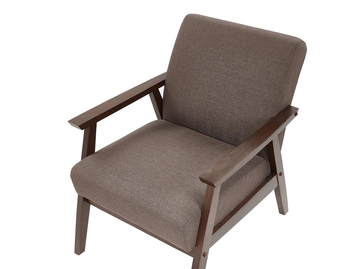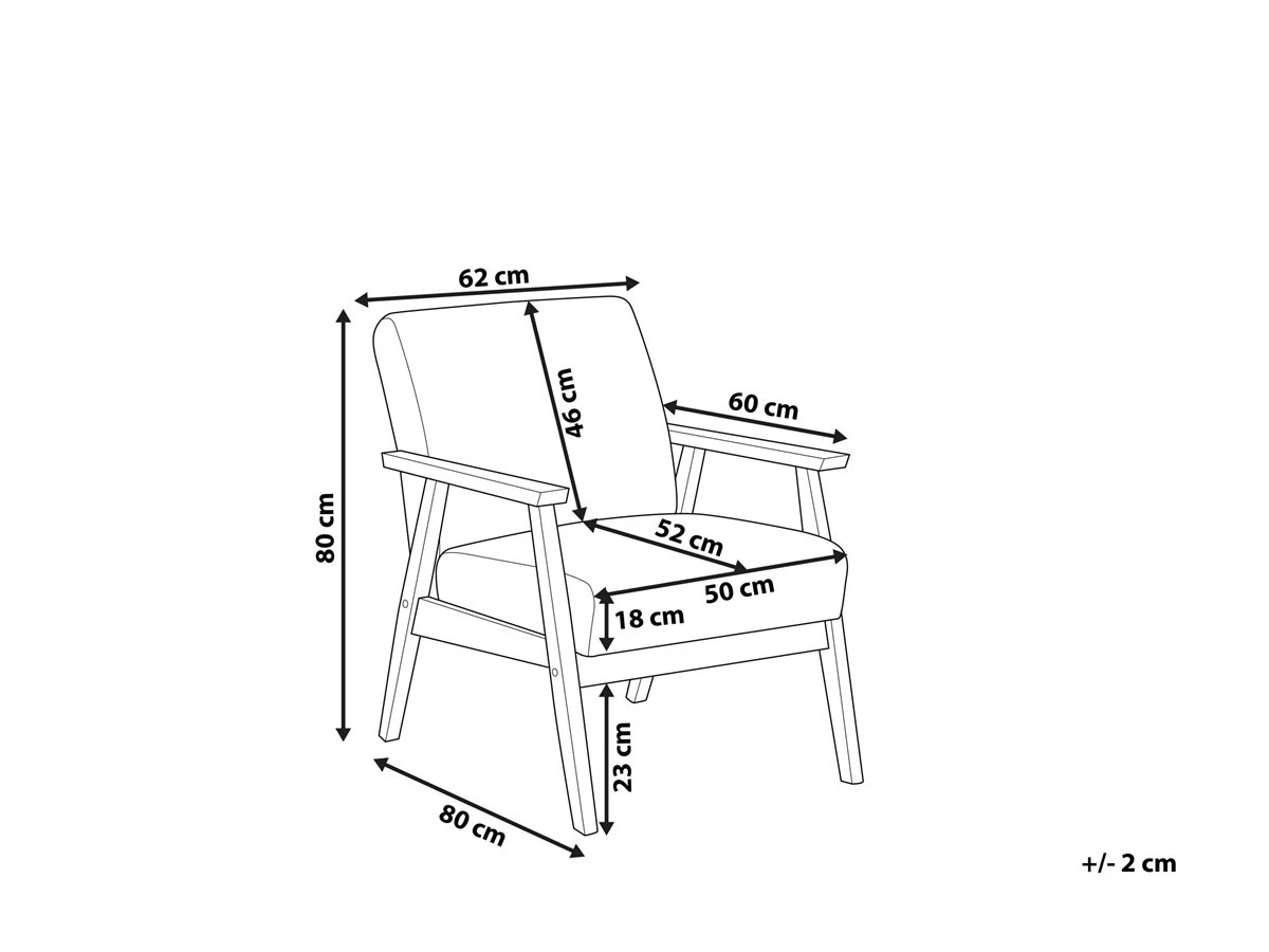 Sillón tapizado retro. Añade un toque retro a tu sala de estar o dormitorio con este sillón. Está fabricado a partir de tela de poliéster de alta calidad y suave al tacto. La estructura de madera garantiza la máxima estabilidad. Detalles: Tipo de Producto: Sillón Estilo: Retro Color: Marrón Tipo de material: Tejido Material principal: Poliéster Material adicional: Madera de caucho Material del relleno: Espuma Material de las patas: Madera maciza Material del asiento: Tejido Composición del Material: 100% Poliéster Estilo del apoyabrazo: Estrecho Apoyabrazo: Sí Protectores para patas: Sí Diseño: Sólido Reclinable: No Construcción del asiento: Muelles ondulados Densidad de espuma del asiento: 24 kg/m3 Dimensiones: Altura del apoyabrazos: 58 cm Profundidad: 62 cm Espesor del asiento: 18 cm Altura del asiento: 46 cm Ancho: 80 cm Altura: 80 cm Superficie del asiento: 52×50 cm Peso: 11 kg Capacidad de peso: 150 kg La oferta incluye: 1 x Sillón Ventajas: El grueso acolchado del asiento brinda comodidad, Estilo retro, Acolchado de alta calidad, Construcción muy estable, Patas con tapas anti-deslizantes Información de montaje: Requiere montaje completo. 20-40 min. Información adicional: Para una mayor estabilidad y seguridad de uso, se recomienda verificar 2 semanas después de la instalación que el montaje del producto ha sido realizado de forma correcta. Revisa, al menos una vez cada 3 meses, que los tornillos estén bien apretados. Consejos de mantenimiento: Poliéster: 1.Aspire con un accesorio adecuado 2.Limpiar con champú seco y una esponja húmeda o un limpiador suave. Madera maciza: 1.Seque inmediatamente después de limpiar. para evitar que se acumule agua en los muebles 2.Limpie con un limpiador y un paño suave en la dirección del grano 3.Los muebles con acabado de aceite deben engrasarse una vez al año