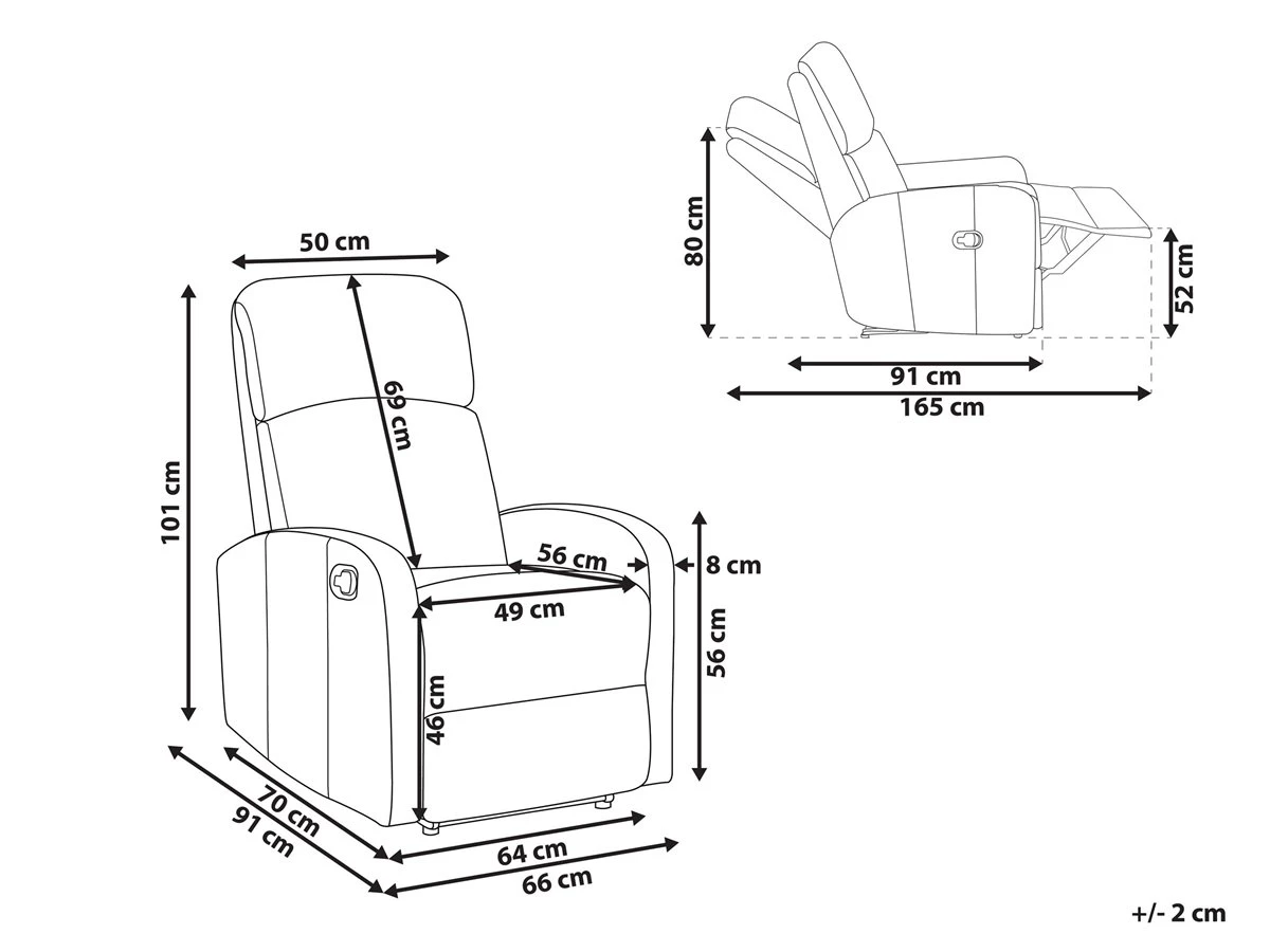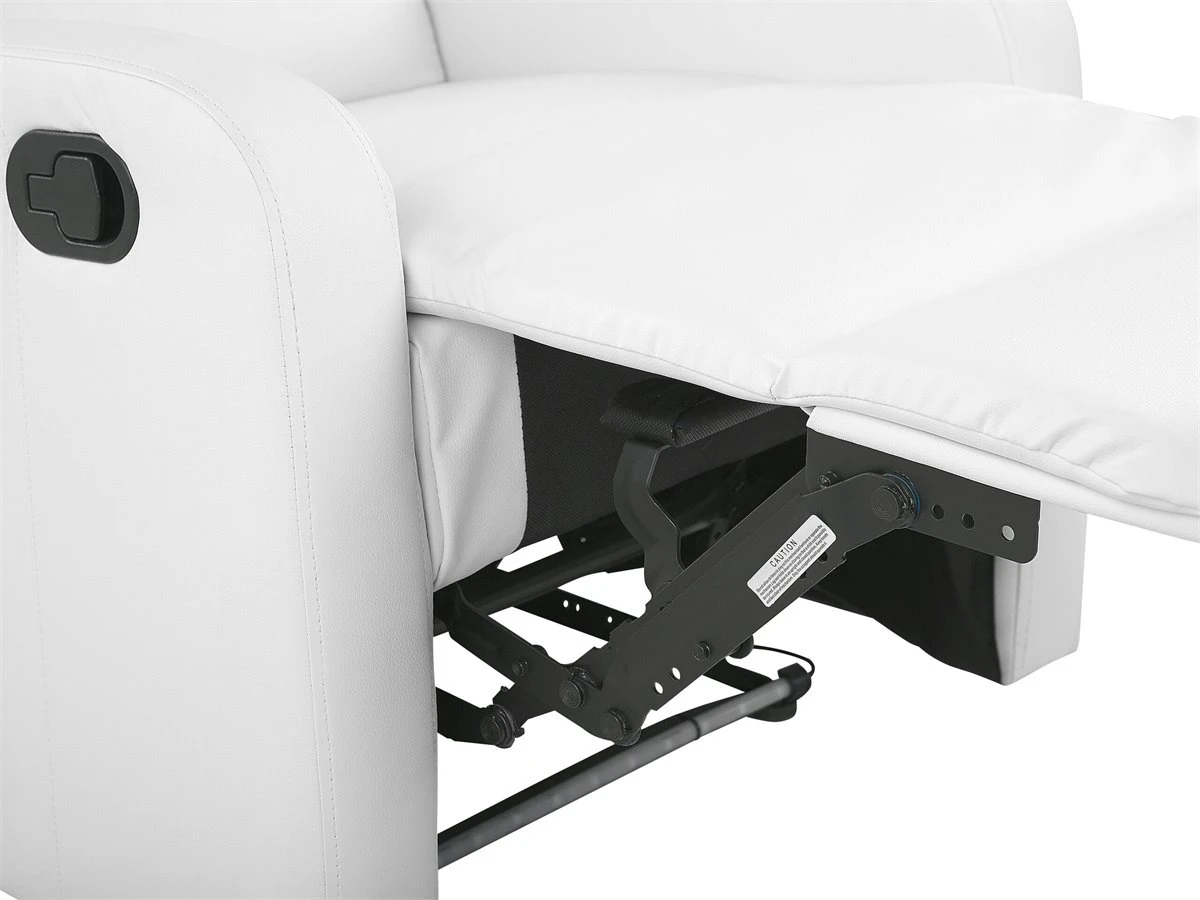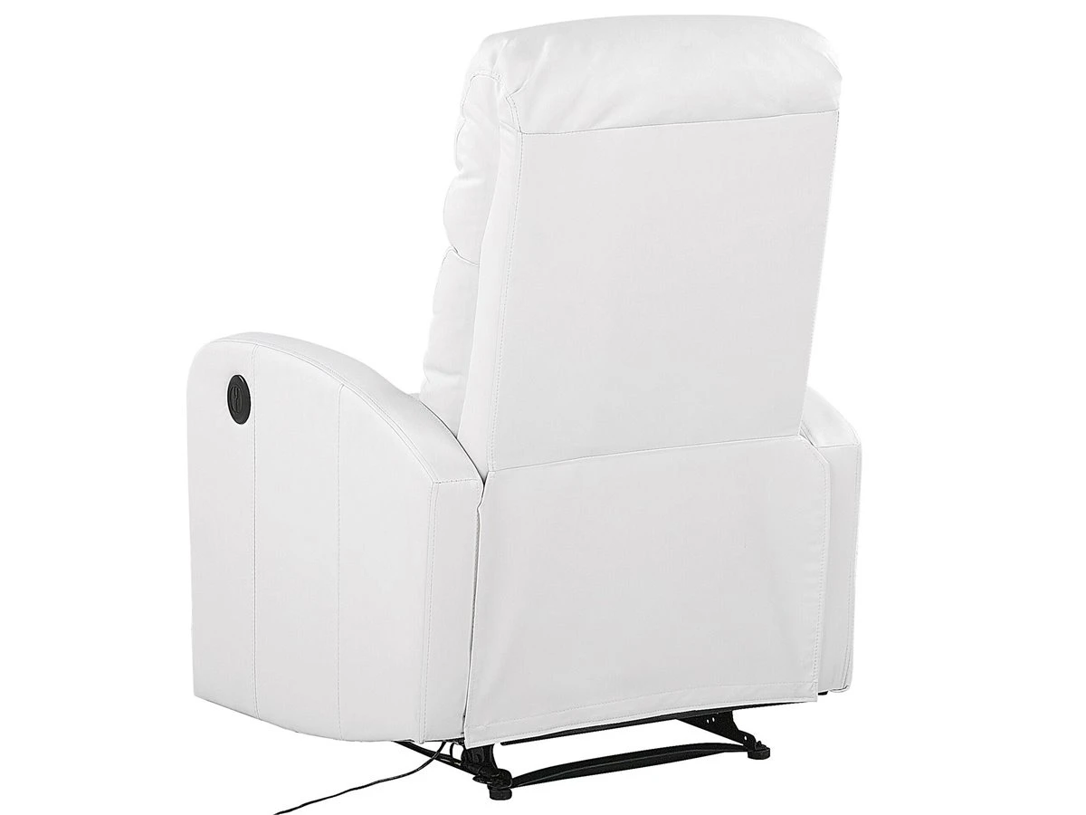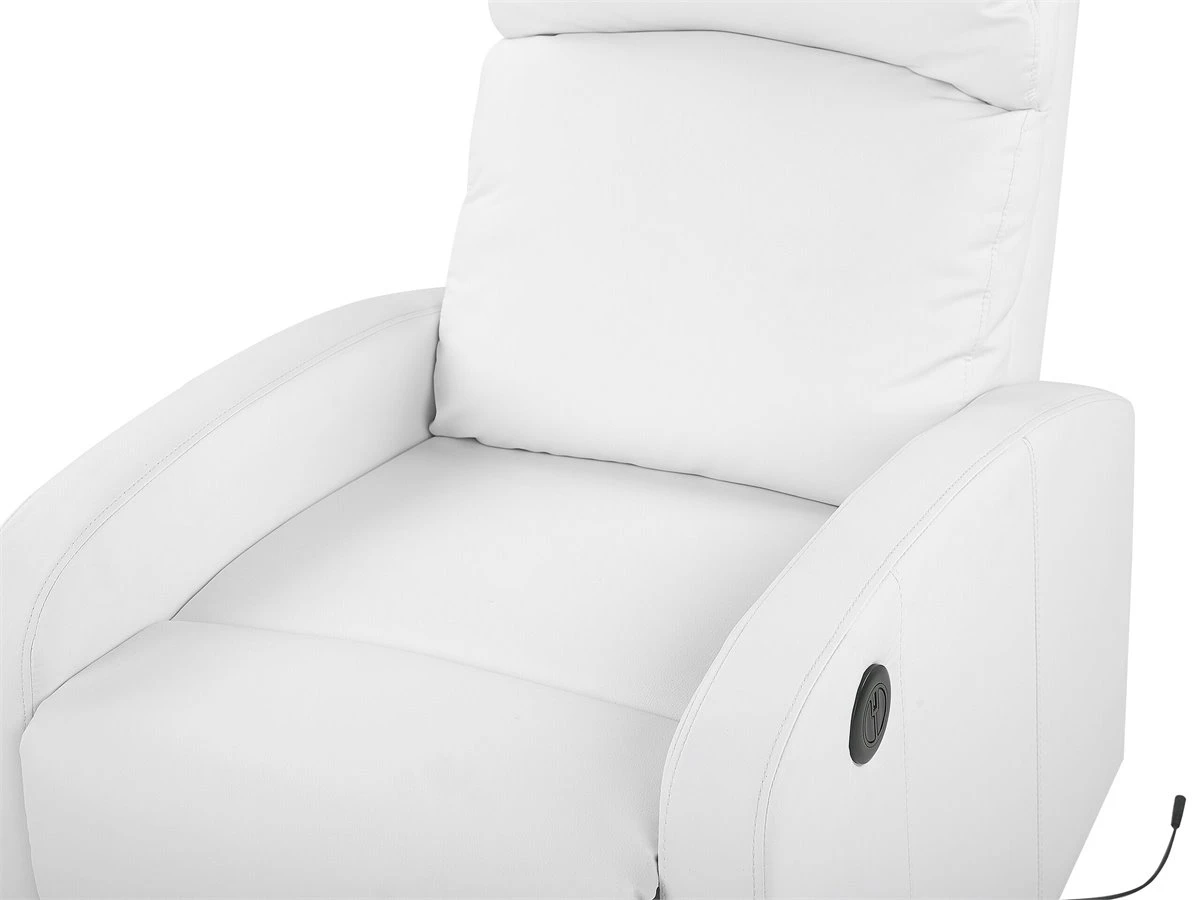 Sillón reclinable tapizado con puerto USB. Añade comodidad a tu sala de estar con este sillón. Está fabricado a partir de piel sintética duradera y de bajo mantenimiento. El respaldo permite 3 posiciones de regulación: vertical, parcialmente tumbado u horizontal. El reposapiés incorporado y el asiento de acolchado grueso ofrecen la máxima comodidad. La luz LED difunde una iluminación brillante e intensa. Viene con un puerto USB, ideal para recargar los dispositivos electrónicos, como el teléfono móvil o el portátil. Detalles: Tipo de Producto: Sillón reclinable Estilo: Moderno Color: Negro Color Temperatura LED: Blanco frío Tipo de material: Piel sintética Material principal: Piel sintética Material adicional: Metal Material del relleno: Espuma Material de las patas: Metal Material del asiento: Piel sintética Composición del Material: 100% Poliéster Estilo del apoyabrazo: Estrecho Reposapies: Sí Flujo luminoso LED: 52.4 LED: Sí Protectores para patas: No Potencia de salida: +12V 2A Reclinable: Sí Construcción del asiento: Muelles de bolsillo Densidad de espuma del asiento: 24 kg/m3 Puerto USB: 5 Dimensiones: Altura del apoyabrazos: 58 cm Profundidad: 91 cm Altura del asiento: 48 cm Ancho: 65 cm Altura: 102 cm Superficie del asiento: 56×50 cm Peso: 28 kg Capacidad de peso: 136 kg La oferta incluye: 1 x Sillón Ventajas: Reposapiés y brazos ajustables, Brinda sensaciones de relax, Respaldo alto y asiento muy cómodo, Tapicería de piel sintética de alta calidad para un aspecto natural, Llamativa iluminación LED que crea un ambiente agradable Información de montaje: Requiere montaje completo. 20-40 min. Información adicional: Para una mayor estabilidad y seguridad de uso, se recomienda verificar 2 semanas después de la instalación que el montaje del producto ha sido realizado de forma correcta. Revisa, al menos una vez cada 3 meses, que los tornillos estén bien apretados. Consejos de mantenimiento: Piel sintética: 1.Limpie con agua destilada y use limpiadores a base de jabón en las manchas difíciles 2.Aspire con un accesorio adecuado 3.Una vez a la semana, limpie con un paño húmedo y seque después. No engrasar, 4.Use solo limpiadores suaves y acondicionadores dedicados a la piel sintética