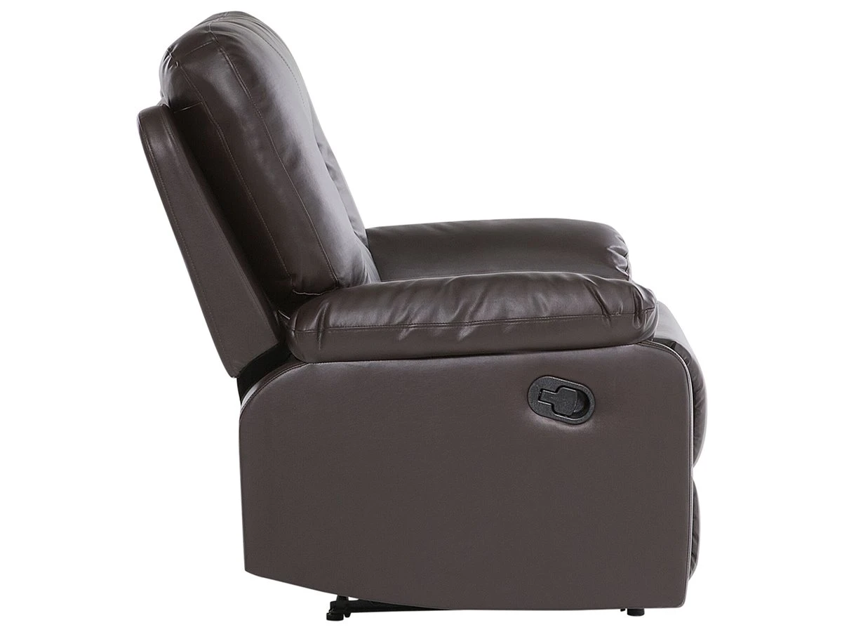 Sillón con reclinación manual. Añade comodidad a tu sala de estar con este sillón reclinable. Está fabricado a partir de piel sintética de alta calidad y suave al tacto. Los reposabrazos amplios y el respaldo alto ofrecen el máximo confort. El reposapiés transforma el sillón en un lugar cómodo para acostarse. Detalles: Tipo de Producto: Sillón reclinable Estilo: Moderno Color: Blanco Tipo de material: Piel sintética Material principal: Piel sintética Material adicional: Acero Material del relleno: Espuma Material de las patas: Acero Material del asiento: Piel sintética Composición del Material: 100% Piel ecológica Estilo del apoyabrazo: Con cojín Apoyabrazo: Sí Protectores para patas: Sí Diseño: Sólido Reclinable: Sí Construcción del asiento: Muelles de bolsillo Densidad de espuma del asiento: 28 kg/m3 Dimensiones: Altura del apoyabrazos: 61 cm Profundidad: 74 cm Altura del asiento: 47 cm Ancho: 85 cm Altura: 101 cm Superficie del asiento: 51×52 cm Peso: 40 kg Capacidad de peso: 135 kg La oferta incluye: 1 x Sillón Ventajas: Reposapiés y brazos ajustables, Brinda sensaciones de relax, Asiento bajo y profundo, Diseño clásico, Alta calidad, Totalmente reclinable a la posición horizontal, Completamente tapizado Información de montaje: Requiere montaje parcial. 5-15 min. Información adicional: Para un uso seguro, debe haber un espacio de ~15 cm entre el respaldo y la pared. Para una mayor estabilidad y seguridad de uso, se recomienda verificar 2 semanas después de la instalación que el montaje del producto ha sido realizado de forma correcta. Revisa, al menos una vez cada 3 meses, que los tornillos estén bien apretados. Consejos de mantenimiento: Piel sintética: 1.Use solo limpiadores suaves y acondicionadores dedicados a la piel sintética, 2.Limpie con agua destilada y use limpiadores a base de jabón en las manchas difíciles 3.Aspire con un accesorio adecuado 4.Una vez a la semana, limpie con un paño húmedo y seque después. No engrasar Acero: 1.Para elementos de cobre o cromados, use agente abrillantador 2.Para evitar arañazos, no use limpiadores abrasivos 3.Limpie con un limpiador y un paño suave, seque después.