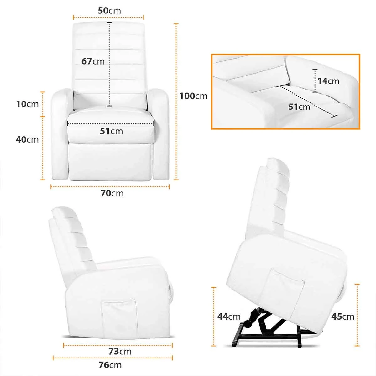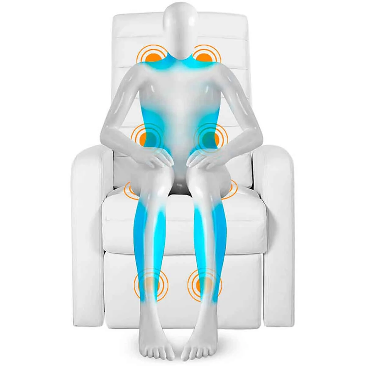 Máximo Confort y elegancia unidos en este sillón de masaje eléctrico que forma parte de la Alta Gama en Sillones Relax Modernos reclinables. Diseñado con una estructura especial con motor levantapersonas, que le convierte en el mejor sillón elevador para personas mayores con problemas de espalda o con movilidad reducida. Cuenta además con 8 motores de masaje y función de Zona de Calor Lumbar, que ejercen un masaje perfecto en zonas estratégicas de tu cuerpo. Éste sillón relax eléctrico es muy fácil de mover para ubicar en espacios pequeños, ya que ha sido diseñado para ser un sillón relax pequeño que puedas ubicar sin problema en cualquier rincón de casa. Disponible en Polipiel color blanco y doble cosido de seguridad. Nunca antes el descanso tuvo tanto estilo. Diseño actual y confort a tu alcance.Sillón Ergonómico de diseño moderno y elegante con acabado en polipiel PU Lux de alta durabilidad, con un tacto suave y agradable y muy fácil de limpiar. Diseño moderno y actual para tu hogar. Sillón reclinable con 2 mandos de control. Estructura de última tecnología está formada por 9 motores: 8 para la función de masaje vibración y 1 para reclinación y elevación. Todos ellos se controlan a través de 2 sencillos mandos.Sillón elevador Levantapersonas. Sillón Confort total para toda la familia, en especial para personas mayores con problemas de espalda o movilidad reducida. Hace mucho más sencilla la tarea de levantarse. Su base está reforzada para mayor comodidad y seguridad, haciendo de él un Sistema de Descanso de total Confianza para el hogar. Tecnología japonesa de masaje shiatsu.8 motores de masaje repartidos estratégicamente por la superficie del sillón para masajear las 4 zonas clave de presión del cuerpo: cervicales, lumbares, glúteos y piernas. Dispone de la opción de calor en la espalda para multiplicar los efectos de nuestros sillones relajantes de masaje.Confort máximo y descanso óptimo. Aporta a tu cuerpo un descanso eficiente y una postura correcta para un descanso integral. Además es estéticamente perfecto para tu hogar. Sillón relax pequeño y fácil de ubicar. Podrás colocarlo en pequeños espacios de tu casa sin ningún problema. Ocupa muy poco espacio y es muy fácil de mover debido a su diseño versátil.