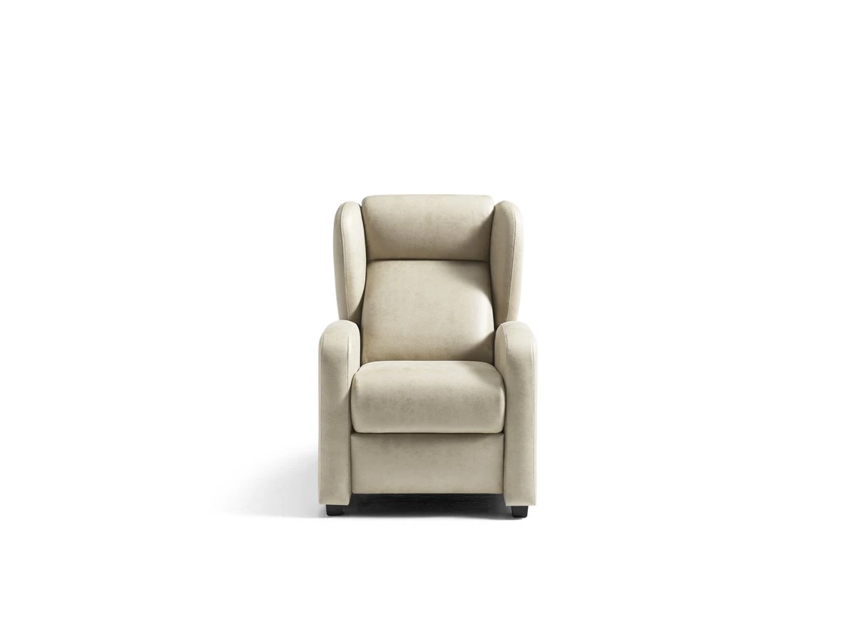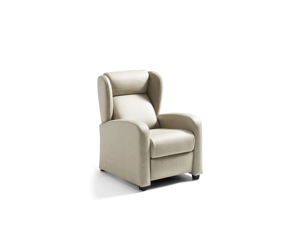 ADA Sillón Relax Manual. Estructura de madera y tablero de partículas. Revestimiento en tela, color beige. Patas en PVC, color wengué. Medidas: 72an x 98al x 88 fon cm.