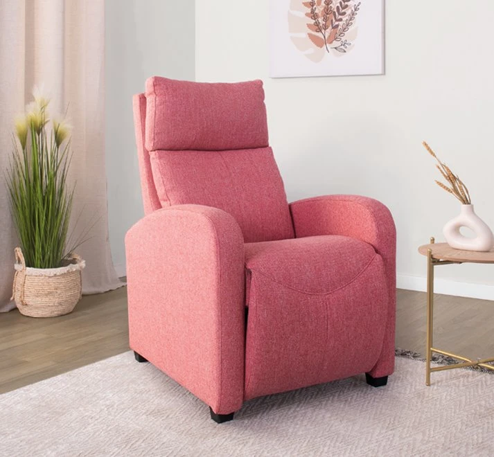 «En Conforama queremos ofrecerte lo mejor, por eso este Sillón relax MILU manual, color Rosa, es lo que necesitas. Este cuenta con tablero de partículas y estructura en madera maciza, y un revestimiento en tela.