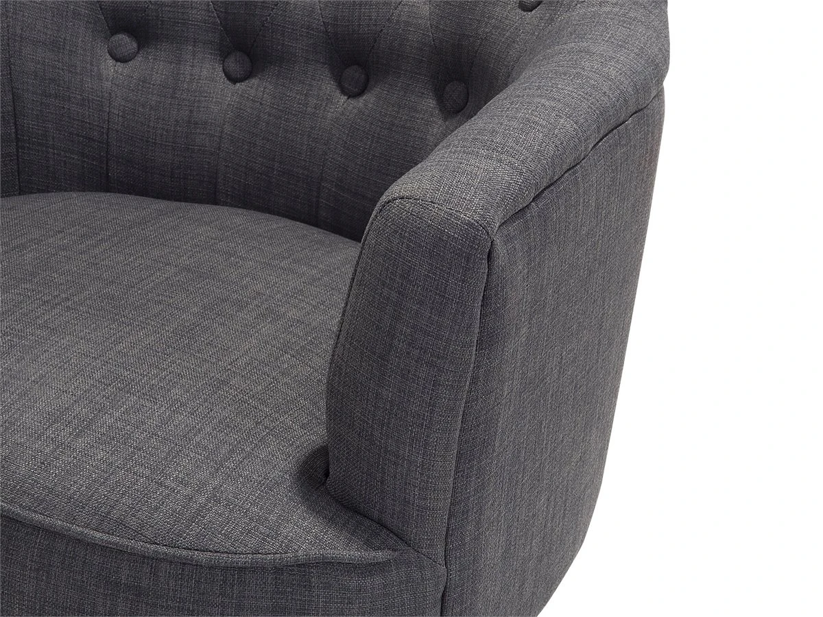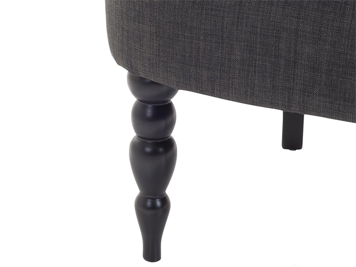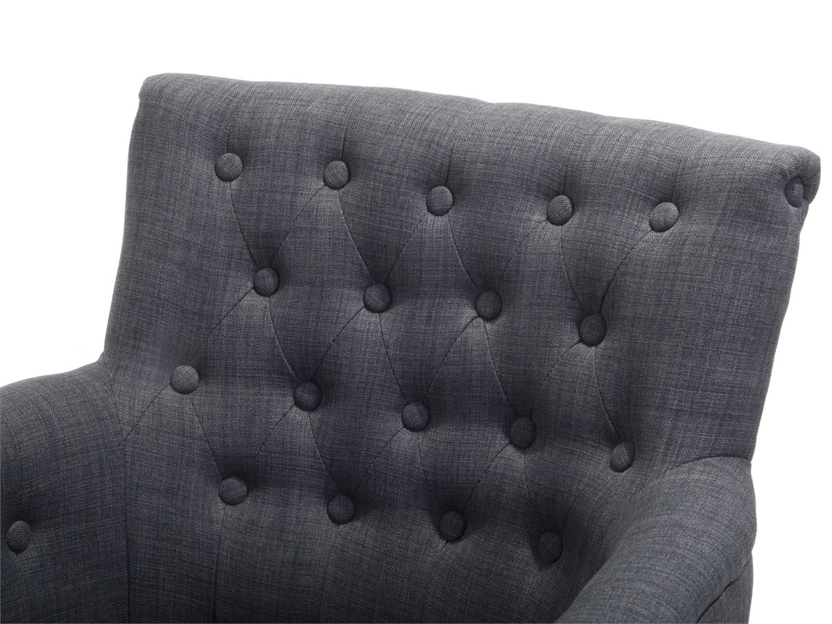 Clásico y elegante sillón gris oscuro. Añade un toque de distinción a la decoración de tu interior con este sillón. Está fabricado a partir de tela de poliéster de alta calidad y suave al tacto. El asiento acolchado ofrece la máxima comodidad. Los botones en el respaldo aportan una experiencia más sofisticada. Las patas delanteras son finas y redondeadas mientras que las traseras, están ligeramente inclinadas. Detalles: Tipo de Producto: Sillón Estilo: Tradicional Color: Gris Tonalidad: Gris oscuro Tipo de material: Tejido Material principal: Poliéster Material adicional: Madera maciza Material del relleno: Espuma Material de las patas: Madera maciza Material del asiento: Tejido Composición del Material: 100% Poliéster Estilo del apoyabrazo: Estrecho Apoyabrazo: Sí Protectores para patas: Sí Diseño: Sólido Reclinable: No Construcción del asiento: Madera Densidad de espuma del asiento: 24 kg/m3 Dimensiones: Altura del apoyabrazos: 65 cm Profundidad: 36 cm Espesor del asiento: 16 cm Altura del asiento: 44 cm Ancho: 59 cm Altura: 85 cm Superficie del asiento: 59×47 cm Peso: 14 kg Capacidad de peso: 150 kg La oferta incluye: 1 x Sillón Ventajas: Cómodos apoyabrazos, Para dormitorio o salón, Acolchado con botones decorativos, Estructura duradera y sólida, Acolchado de alta calidad Información de montaje: Requiere montaje de las patas. 20-40 min. Información adicional: Para una mayor estabilidad y seguridad de uso, se recomienda verificar 2 semanas después de la instalación que el montaje del producto ha sido realizado de forma correcta. Revisa, al menos una vez cada 3 meses, que los tornillos estén bien apretados. Consejos de mantenimiento: Poliéster: 1.Aspire con un accesorio adecuado 2.Limpiar con champú seco y una esponja húmeda o un limpiador suave. Madera maciza: 1.Limpie con un limpiador y un paño suave en la dirección del grano 2.Los muebles con acabado de aceite deben engrasarse una vez al año, 3.Seque inmediatamente después de limpiar. para evitar que se acumule agua en los muebles.