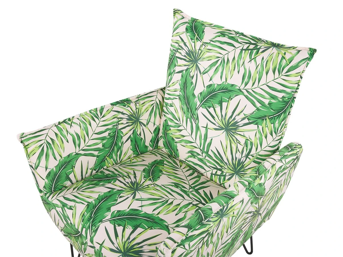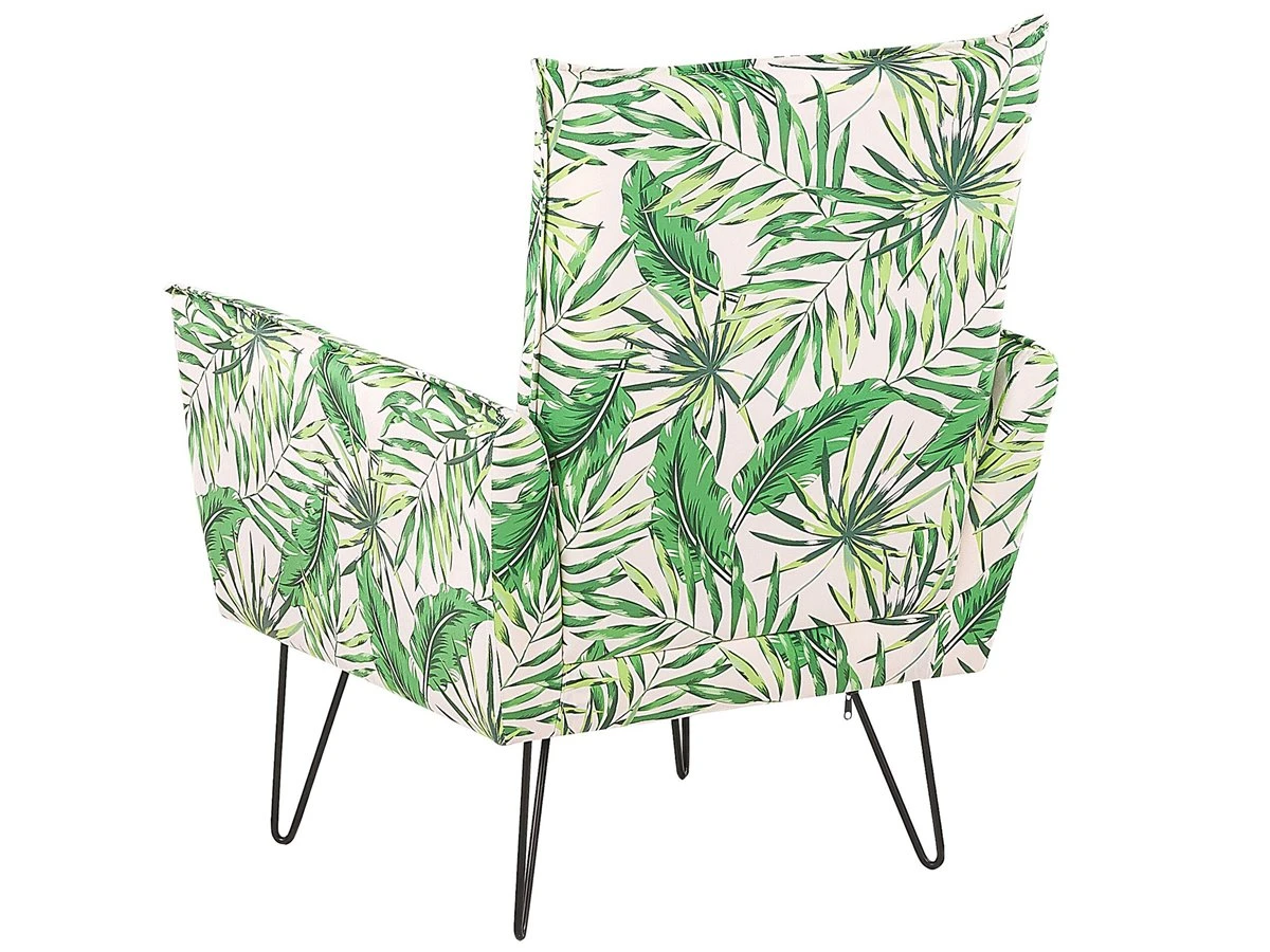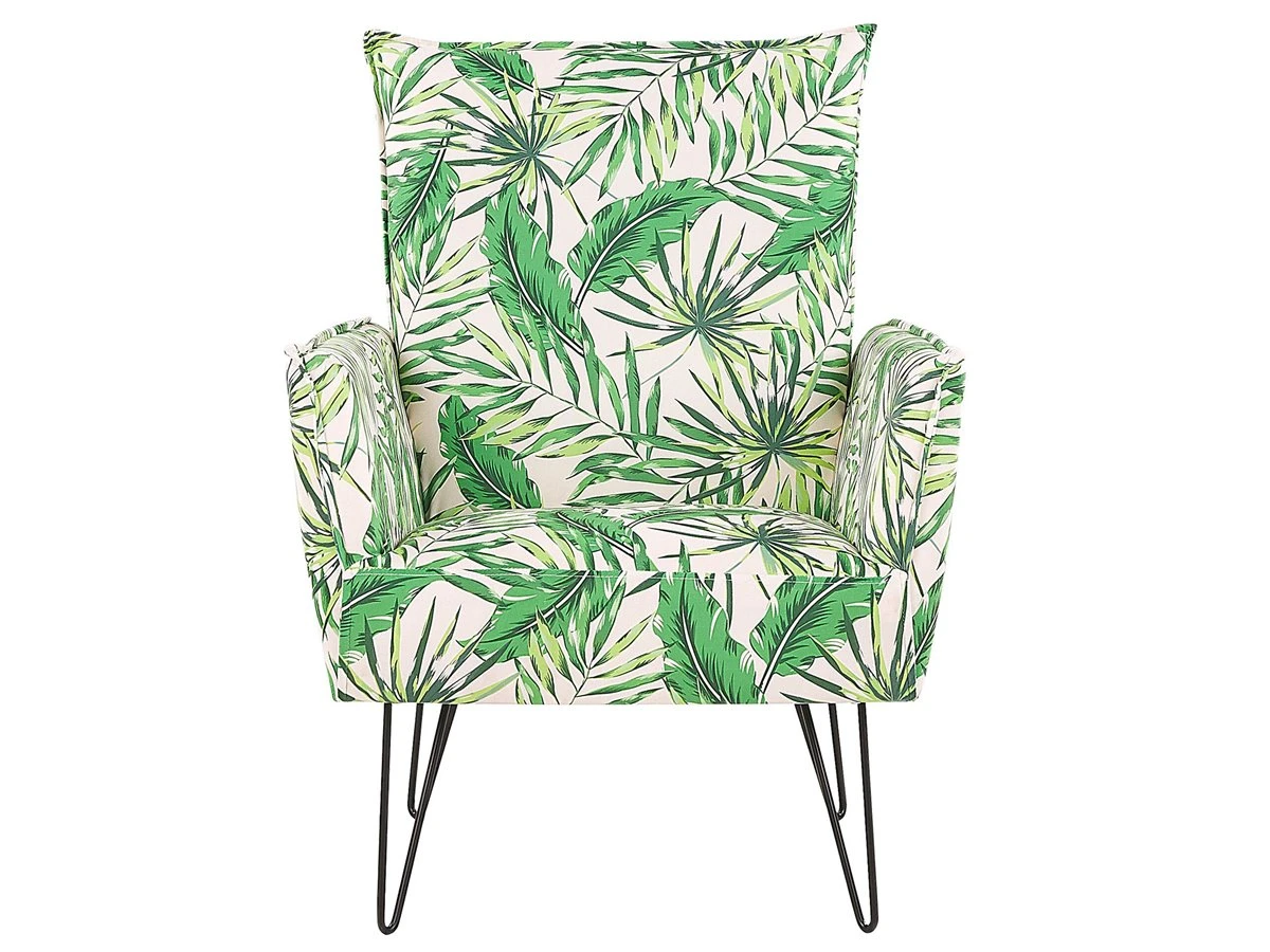 Sillón decorativo. Añade un toque retro a tu sala de estar con este sillón. Está fabricado a partir de tela de poliéster de alta calidad y suave al tacto. El patrón floral llama poderosamente la atención. El respaldo alto y los reposabrazos de estilo clásico garantizan la máxima comodidad. Las patas finas de metal proporcionan estabilidad. Detalles: Tipo de Producto: Sillón Estilo: Moderno Color: Verde Tipo de material: Tejido Material principal: Poliéster Material adicional: Madera de pino Material del relleno: Espuma Material de las patas: Metal Material del asiento: Tejido Composición del Material: 100% Poliéster Estilo del apoyabrazo: Estrecho Apoyabrazo: Sí Protectores para patas: No Diseño: Estampado con hojas Reclinable: No Construcción del asiento: Madera Densidad de espuma del asiento: 28 kg/m3 Dimensiones: Altura del apoyabrazos: 68 cm Profundidad: 81 cm Espesor del asiento: 18 cm Altura del asiento: 44 cm Ancho: 72 cm Altura: 91 cm Superficie del asiento: 50×53 cm Peso: 14 kg Capacidad de peso: 120 kg La oferta incluye: 1 x Sillón Ventajas: El grueso acolchado del asiento brinda comodidad, Ancha superficie del asiento, Colores vivos, Brinda un toque acogedor a cualquier habitación, Muy fácil de conservar, Completamente tapizado Información de montaje: Requiere montaje completo. 5-15 min. Información adicional: Para una mayor estabilidad y seguridad de uso, se recomienda verificar 2 semanas después de la instalación que el montaje del producto ha sido realizado de forma correcta. Revisa, al menos una vez cada 3 meses, que los tornillos estén bien apretados. Consejos de mantenimiento: Poliéster: 1.Limpiar con champú seco y una esponja húmeda o un limpiador suave 2.Aspire con un accesorio adecuado. Metal: 1.Para evitar arañazos, no use limpiadores abrasivos 2.Limpie con un limpiador y un paño suave, seque después 3.Para elementos de cobre o cromados, use agente abrillantador.