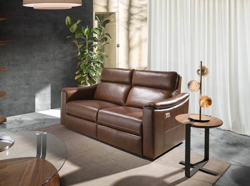 Sofá 3 plazas en piel vacuno con mecanismos relax modelo 6166 Angel Cerdá S.L. Sofá 3 plazas de diseño moderno tapizado en piel vacuno de 1,25 mm de espesor color marrón Cognac. Sus asientos reclinables en respaldo y reposapiés le aportan ese extra de comodidad que necesita para disfrutar de su momento de tranquilidad. Un sofá de estilo minimalista y único, con una robusta estructura interna de madera de pino natural y asientos con mecanismos eléctricos de relax. La combinación perfecta entre diseño, elegancia y confort. ESTILO: Este original sofá 3 plazas tapizado en piel de origen vacuno color marrón Cognac de las más alta calidad aportará el toque original y personal que busca para su hogar, fiel a las últimas tendencias en decoración. MULTIESTANCIA: Funcional y acogedor, su diseño con mecanismos relax, permitirá que encaje en cualquier tipo de salón, convirtiéndose en el gran protagonista de la sala. CALIDAD: Todos nuestros productos están fabricados con materiales de la más alta calidad, siendo garantái de mobiliario duradero y funcional. DECORACIÓN: Gracias a su diseño moderno y original, combinando las formas originales del reposabrazos y el tapizado color marrón Cognac, lo convierten en un sofá perfecto para aportar el equilibrio perfecto entre estilo y comodidad. DIMENSIONES Y CONFORT: El tamaño de sus asientos con mecanismo relax y su relleno de espuma de poliuretano de 25 kg/m3 de densidad, le proporcionarán el máximo confort, sin dejar de lado la más alta tendencia. CARACTERÍSTICAS: Este sofá cuenta con un conector USB, eliminando la necesidad de tener un enchufe cerca y asi poder cargar sus dispositivos. Además, puede terminar su estancia con el conjunto de 2 plazas.
