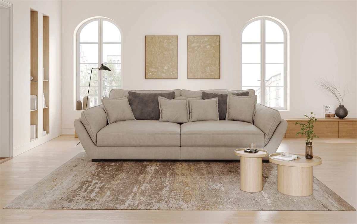 Mejora tu salón con el sofá de 3 plazas PEACE XL. Elaborado a partir de una estructura de madera y espuma, este sofá es la combinación perfecta de estilo y comodidad. Para completar tu oasis de relax, incluye dos cojines de 62×48 cm y seis cojines decorativos para mayor comodidad. Aproveche al máximo su espacio con el mueble definitivo, que mide 266 cm de ancho x 64 de alto x 234 cm de profundidad.