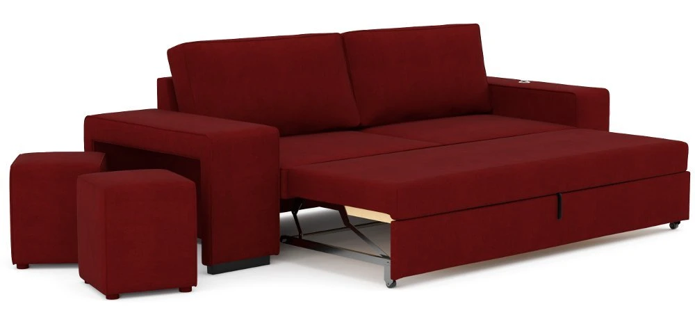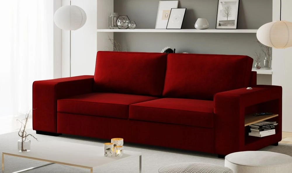 Te perderás entre este sofá cama 3 plazas KARL con la comodidad y el confort en su máxima expresión. El mullido tapizado en tela te hará sentir un agradable tacto, mientras que la amplitud de sus asientos te permitirá tumbarte plácidamente. Su diseño actual otorgará un punto contemporáneo a tu estancia que no te puedes perder. Pero además de ser moderna en aspecto, lo es también en funcionalidad: cuenta con un librero en el lateral para dejar tus lecturas favoritas y un soporte USB para que puedas conectar tu smartphone y no quedarte sin batería. Además, podrás transformarlo fácilmente en una cama hasta para 2 personas y sus 2 poufs incluidos te resultarán un complemento muy práctico. El sofá cama 3 plazas KARL hará tus delicias para alargar cuanto quieras esos momentos de relajación.