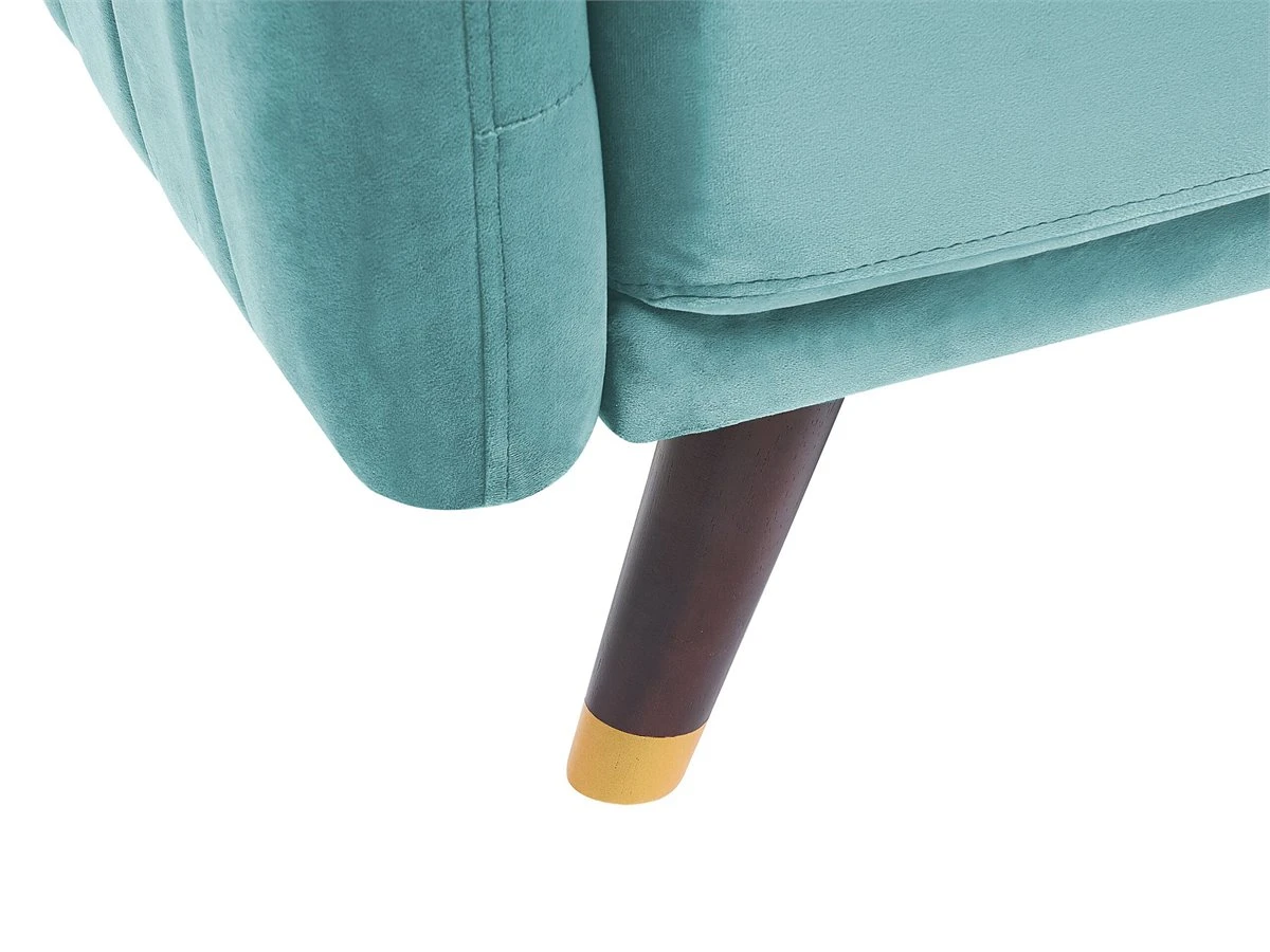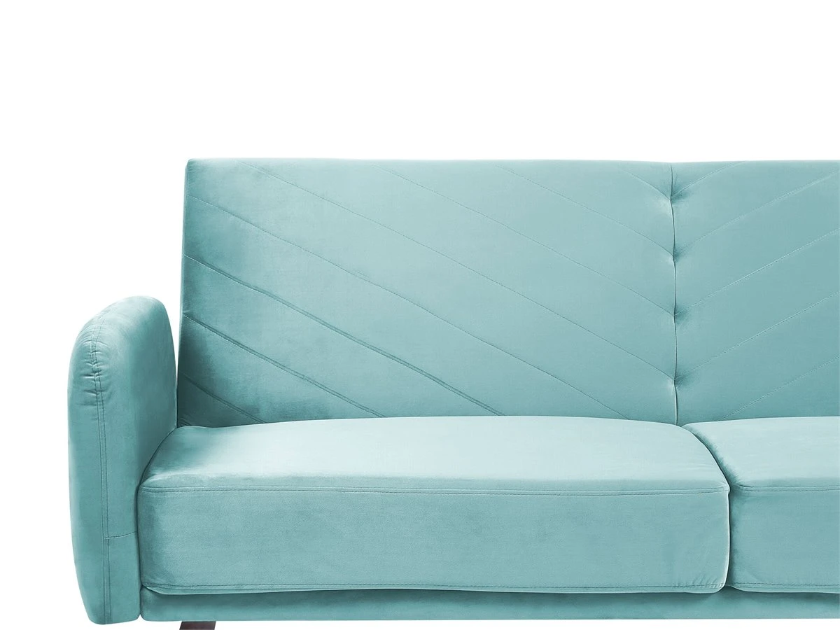 Sofá convertible de diseño minimalista. Este sofá cama combina bien con cualquier interior de estilo glamuroso, moderno o de mediados de siglo. Está fabricado a partir de terciopelo de alta calidad. El respaldo ajustable y las patas de madera de caucho aportan un toque escandinavo a la pieza. Los cojines acolchados de espuma ofrecen la máxima comodidad. Fácilmente convertible en cama. Detalles: Tipo de Producto: Sofá de 3 plazas Estilo: Retro Color: Azul Tonalidad: Azul claro Tipo de material: Poliéster aterciopelado Material principal: Terciopelo Material adicional: Madera de caucho Material del relleno: Espuma Composición del Material: 100% Poliéster Estilo del apoyabrazo: Estrecho Apoyabrazo: Sí Parte posterior tapizada: No Protectores para patas: Sí Reclinable: Sí Fundas de cojín extraíble: No Construcción del asiento: Muelles ondulados Densidad de espuma del asiento: 50 kg/m3 Asientos para: 3 personas Función para dormir: Sí Mecanismo de abertura del sofa cama: Mecanismo click-clack Almacenamiento: No Dimensiones: Altura del apoyabrazos: 48 cm Profundidad: 95 cm Espesor del asiento: 18 cm Altura del asiento: 41 cm Ancho: 200 cm Altura: 87 cm Superficie del asiento: 181×57 cm Superficie para dormir: 110×181 cm Peso: 43 kg Capacidad de peso por persona: 80 kg La oferta incluye: 1 x Sofá de 3 plazas Ventajas: Se convierte en cómoda cama, Muy cómodo, Brinda un toque moderno a cualquier interior, Diseño tradicional con un toque moderno, Tejido aterciopelado suave como la seda, Respaldo ajustable Información de montaje: Requiere montaje parcial. 5-15 min. Información adicional: A efectos de transporte, las patas están ocultas en un bolsillo en la parte inferior del asiento. Tenga en cuenta que la tela de terciopelo puede verse un poco diferente cuando se expone a una iluminación diferente: tiende a brillar más a la luz del día y parece más atenuada en la iluminación artificial interior. Debido a la estructura suave de alta densidad, el tono de la tela de terciopelo también puede variar cuando se pasa la mano en diferentes direcciones y ángulos. Para igualar el color y eliminar las arrugas, el material debe limpiarse con la palma de mano abierta en una dirección, limpiarse con un paño húmedo o una plancha con vapor. Consejos de mantenimiento: Terciopelo: 1.Aspire con un accesorio adecuado 2.Limpiar con champú seco y una esponja húmeda o un limpiador suave. Madera de caucho: 1.Los muebles con acabado de aceite deben engrasarse una vez al año, 2.Seque inmediatamente después de limpiar. para evitar que se acumule agua en los muebles 3.Limpie con un limpiador y un paño suave en la dirección del grano.