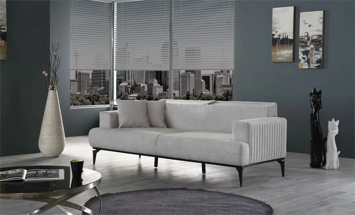 Mejora tu sala de estar con estilo con nuestro sofá cama de 3 plazas. Es la combinación perfecta de comodidad y conveniencia, brindándole un cómodo sofá para relajarse durante el día y una cama espaciosa para dormir por la noche. Fabricado con materiales duraderos y disponible en un elegante color gris, este sofá cama hará que cualquier habitación se vea genial.
