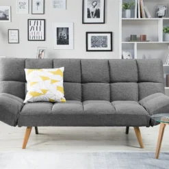 Sofá cama gris oscuro. Añade a tu interior este sofá cama de diseño moderno. El tapizado de tela de poliéster de alta calidad, el acolchado de espuma y las patas de metal con acabado similar a la madera ofrecen comodidad y estabilidad. El respaldo y los reposabrazos son ajustables, lo que permite sentarse cómodamente o acostarse. Fácilmente convertible en cama gracias al mecanismo clic-clac incorporado. Detalles: Tipo de Producto: Sofá de 3 plazas Estilo: Moderno Color: Gris Tonalidad: Gris oscuro Tipo de material: Tejido Material principal: Poliéster Material adicional: Metal Material del relleno: Espuma Composición del Material: 100% Poliéster Estilo del apoyabrazo: Ajustable Apoyabrazo: Sí Parte posterior tapizada: No Protectores para patas: Sí Reclinable: Sí Fundas de cojín extraíble: No Construcción del asiento: Muelles ondulados Densidad de espuma del asiento: 60 kg/m3 Asientos para: 3 personas Función para dormir: Sí Mecanismo de abertura del sofa cama: Mecanismo click-clack Almacenamiento: No Dimensiones: Altura del apoyabrazos: 34 cm Profundidad: 79 cm Altura del asiento: 36 cm Ancho: 182 cm Altura: 86 cm Superficie del asiento: 182×51 cm Superficie para dormir: 182×111 cm Peso: 39 kg Capacidad de peso por persona: 100 kg La oferta incluye: 1 x Sofá Ventajas: Se convierte en cómoda cama, Acolchado grueso, Combina con cualquier estilo de interior, Colores elegantes y diseño original, Apoyabrazos ajustables Información de montaje: Requiere montaje completo. 5-15 min. Información adicional: Los reposabrazos ajustables también se pueden usar como reposacabezas para dormir. No se recomienda utilizar el reposabrazos para sentarse. A efectos de transporte, las patas están ocultas en un bolsillo en la parte inferior del asiento. Consejos de mantenimiento: Poliéster: 1.Aspire con un accesorio adecuado 2.Limpiar con champú seco y una esponja húmeda o un limpiador suave. Metal: 1.Limpie con un limpiador y un paño suave, seque después 2.Para elementos de cobre o cromados, use agente abrillantador 3.Para evitar arañazos, no use limpiadores abrasivos.