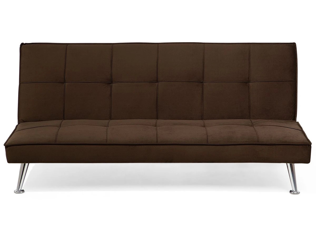Sofá cama de terciopelo. Este sofá cama aporta un toque de elegancia a cualquier interior moderno o minimalista. Está fabricado a partir de tela de poliéster de alta calidad. Las patas de metal acentúan el diseño moderno. Fácilmente convertible en cama gracias a su respaldo ajustable. Detalles: Tipo de Producto: Sofá de 3 plazas Estilo: Moderno Color: Rojo Tipo de material: Tejido Material principal: Poliéster Material adicional: Metal Material del relleno: Espuma Composición del Material: 100% Poliéster Estilo del apoyabrazo: Sin reposabrazos Apoyabrazo: No Parte posterior tapizada: No Protectores para patas: No Reclinable: No Fundas de cojín extraíble: No Construcción del asiento: Muelles ondulados Densidad de espuma del asiento: 50 kg/m3 Asientos para: 3 personas Función para dormir: Sí Mecanismo de abertura del sofa cama: Mecanismo click-clack Almacenamiento: No Dimensiones: Profundidad: 88 cm Espesor del asiento: 12 cm Altura del asiento: 31 cm Ancho: 168 cm Altura: 75 cm Superficie del asiento: 168×54 cm Superficie para dormir: 168×105 cm Peso: 24 kg Capacidad de peso por persona: 150 kg La oferta incluye: 1 x Sofá Ventajas: Se convierte en cómoda cama, Respaldo ajustable en 3 posiciones, Confort del asiento óptimo, Colores vivos, Crea un ambiente acogedor, Acolchado de alta calidad Información de montaje: Requiere montaje de las patas. 5-15 min. Información adicional: A efectos de transporte, las patas están ocultas en un bolsillo en la parte inferior del asiento. Consejos de mantenimiento: Poliéster: 1.Aspire con un accesorio adecuado 2.Limpiar con champú seco y una esponja húmeda o un limpiador suave. Metal: 1.Para elementos de cobre o cromados, use agente abrillantador 2.Para evitar arañazos, no use limpiadores abrasivos 3.Limpie con un limpiador y un paño suave, seque después.