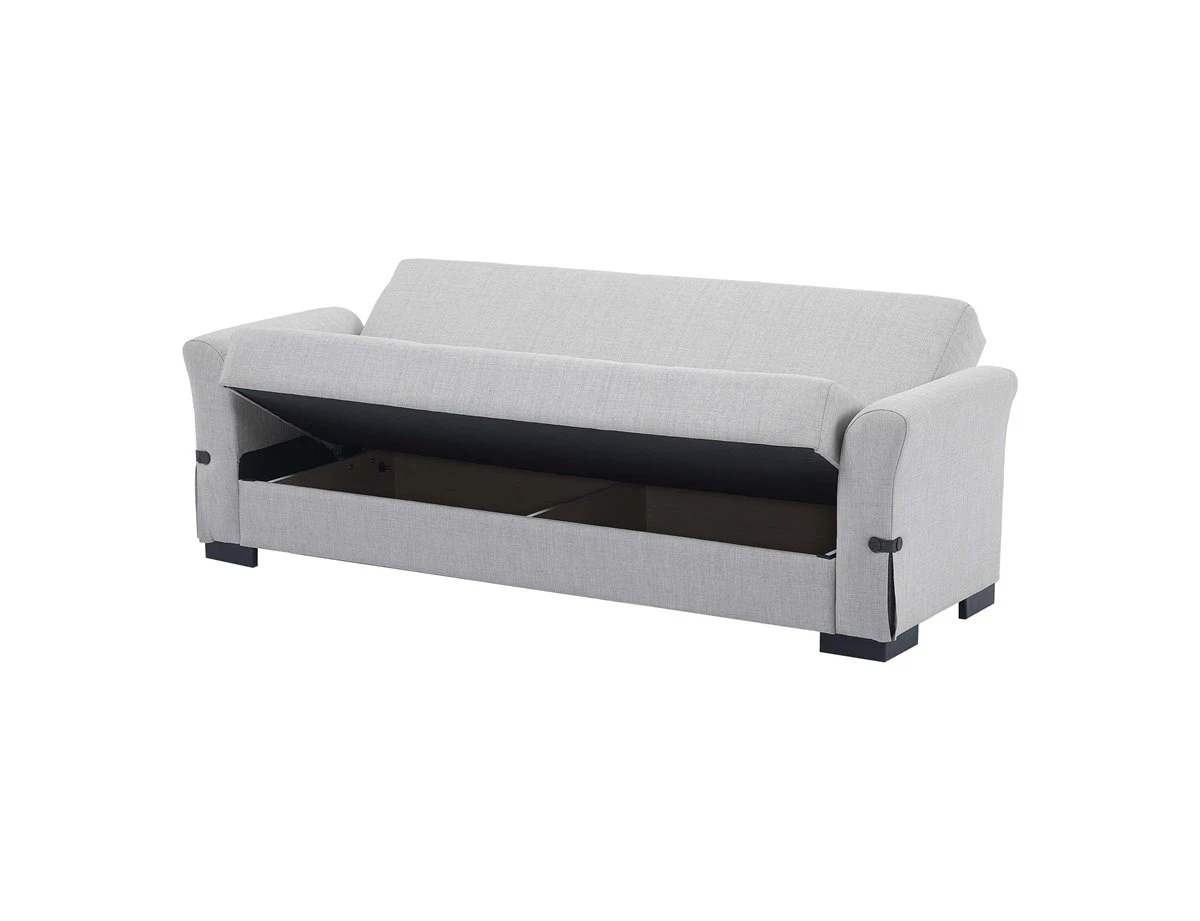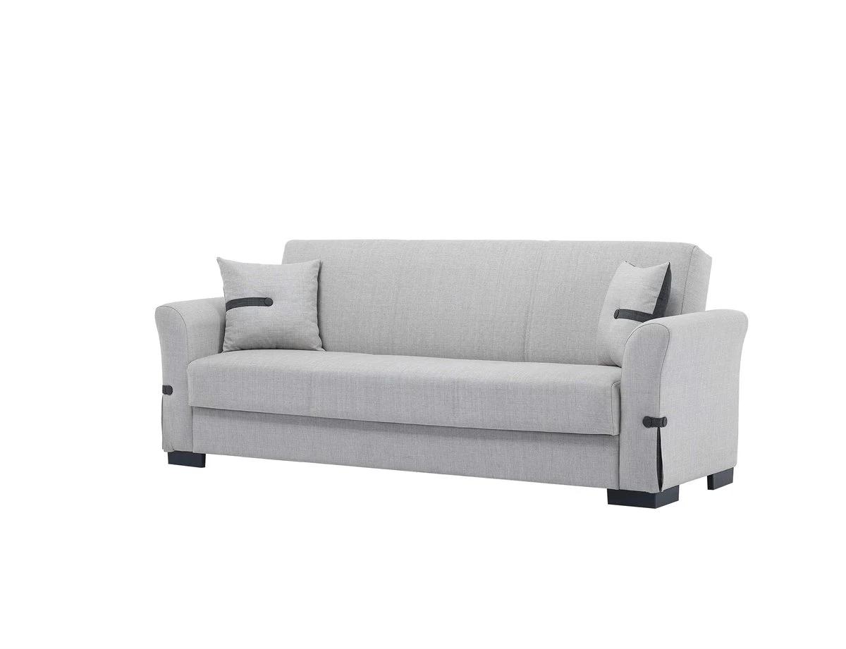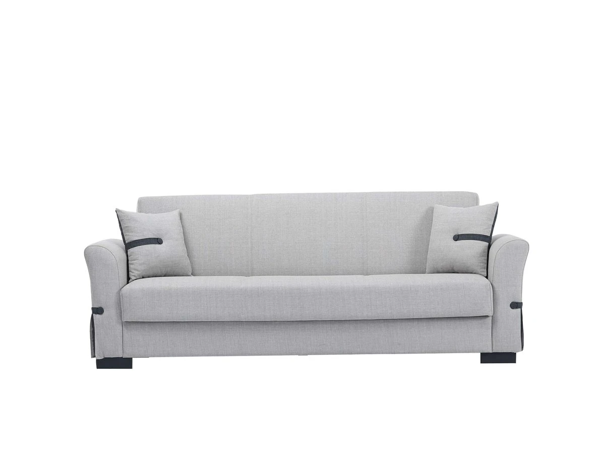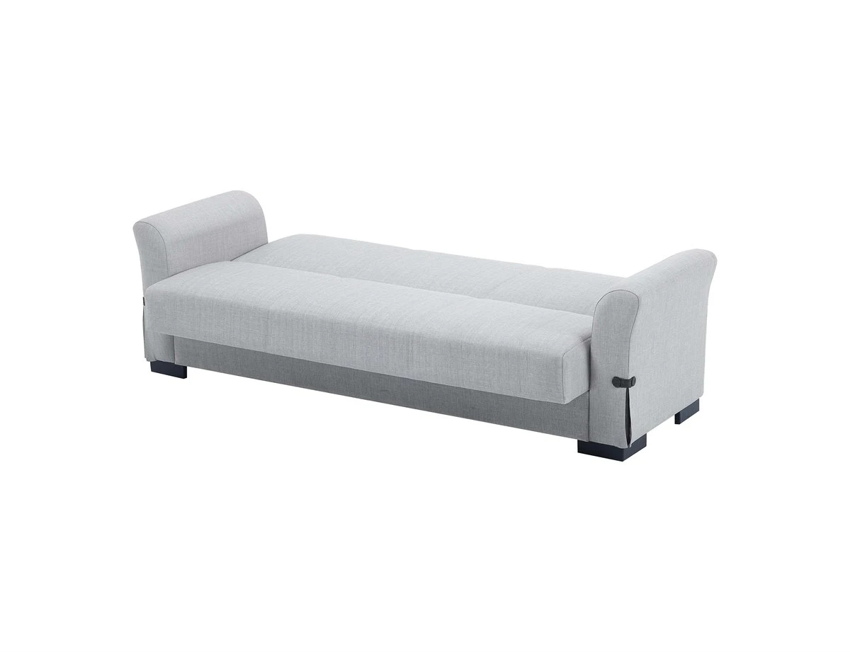 El sofá cama STELA es el sofá que buscas si lo que necesitas es funcionalidad y comodidad en tu hogar. El arcón de su interior es la formula perfecta para ganar espacio de almacenamiento en tu salon. Además, la opción de transformarlo en cama de 102 x 190 cm, te dará la oportunidad de acojer a tus visitas mas deseadas. El sofá cama de 3 plazas STELA en color gris claro es una opción funcional y elegante para cualquier hogar. Con un arcón en su interior y 2 cojines de color antracita.