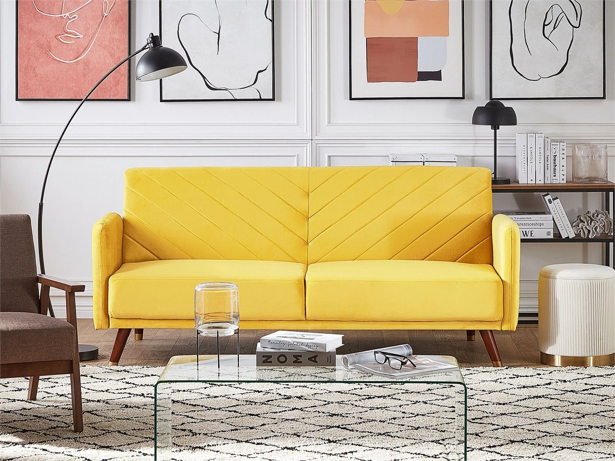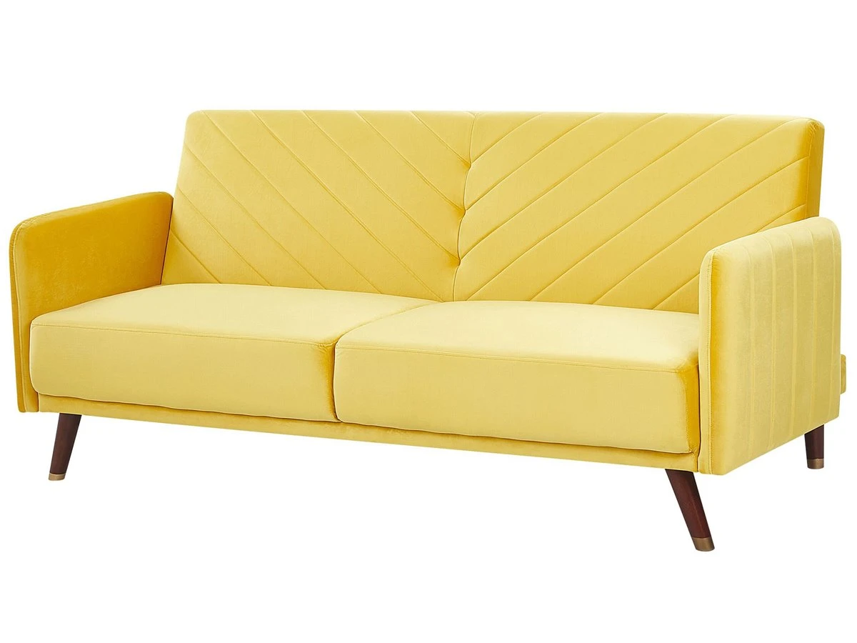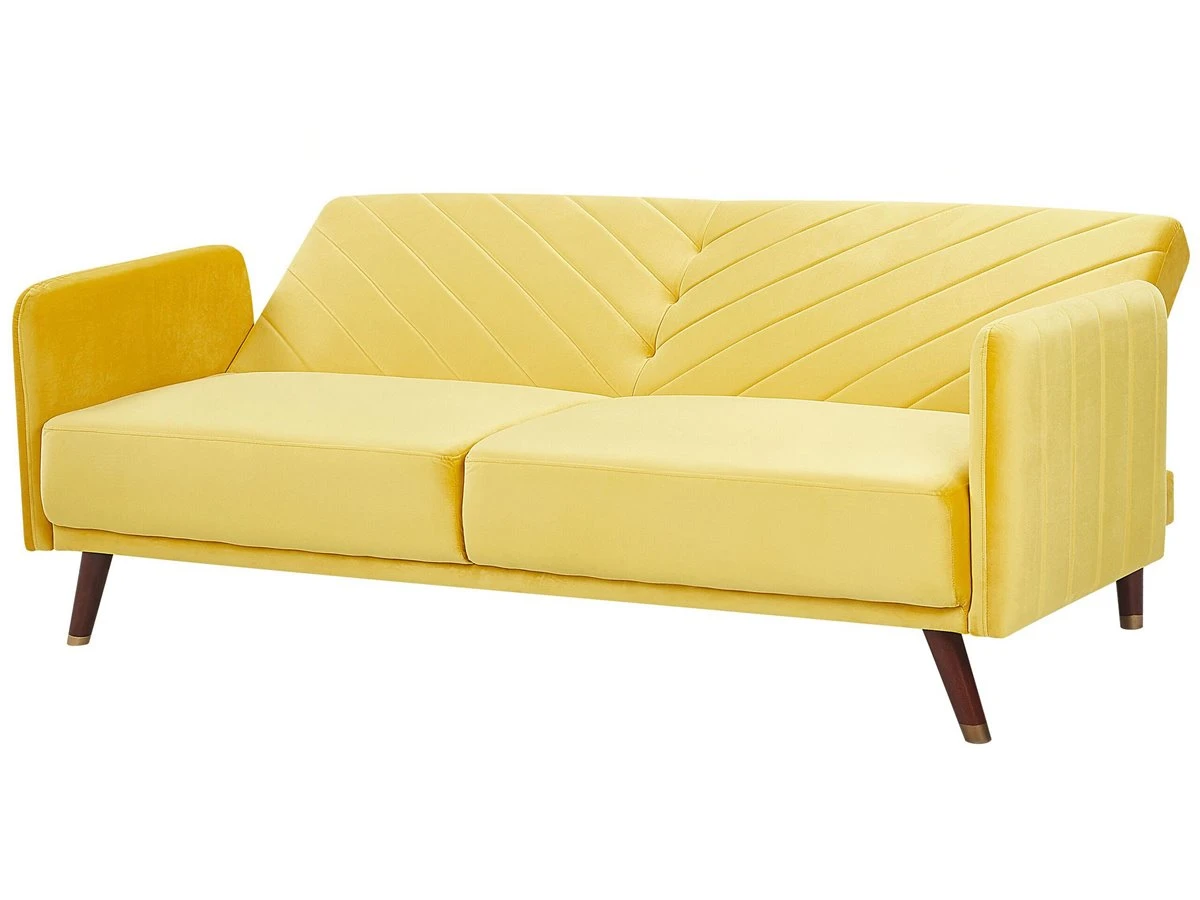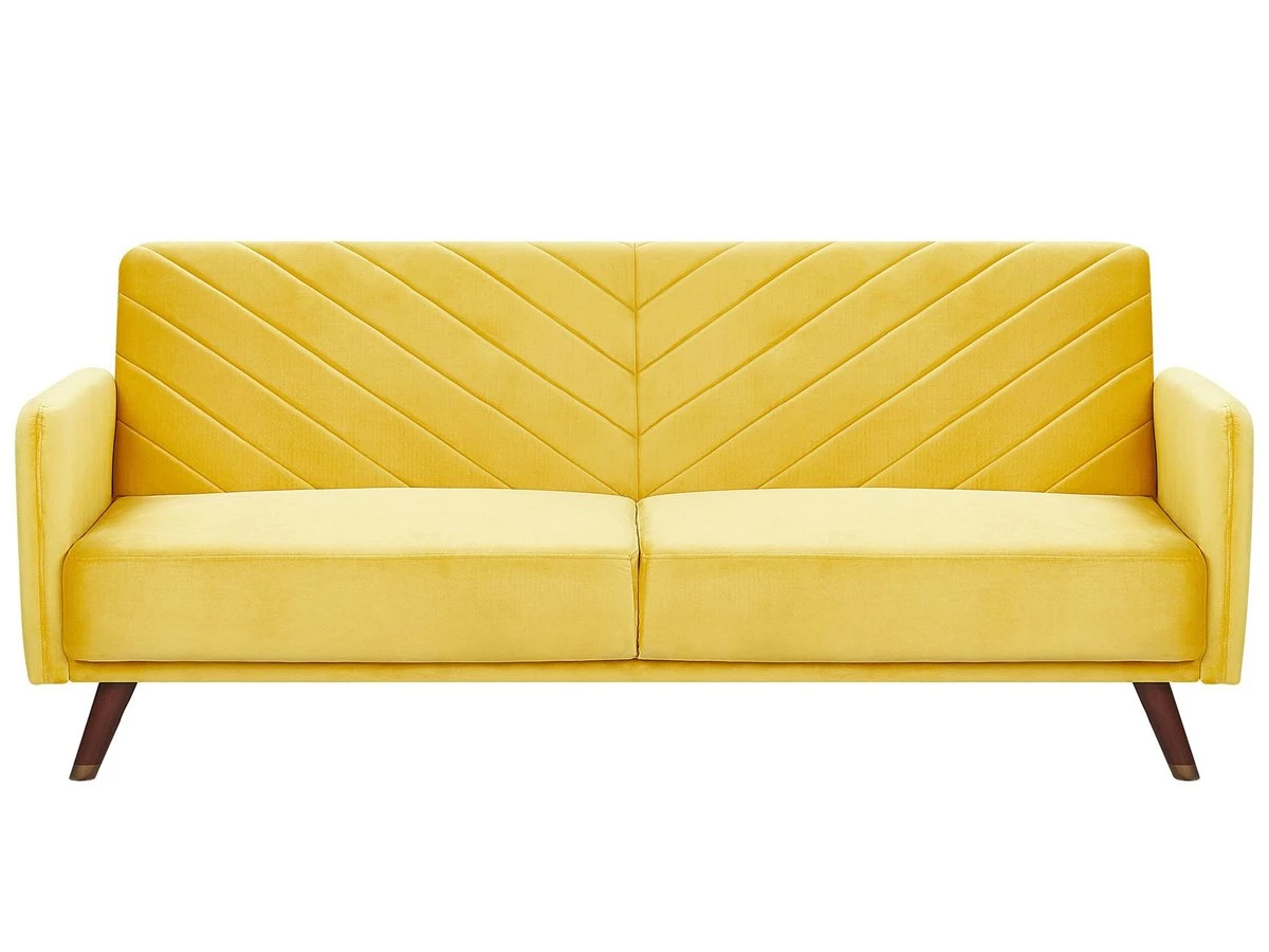 Sofá cama de diseño exclusivo. Este sofá cama combina bien con cualquier interior de estilo glamuroso, moderno o de mediados de siglo. Está fabricado a partir de terciopelo de alta calidad. El respaldo ajustable y las patas de madera de caucho aportan un toque escandinavo a la pieza. Los cojines acolchados de espuma ofrecen la máxima comodidad. Fácilmente convertible en cama. Detalles: Tipo de Producto: Sofá de 3 plazas Estilo: Retro Color: Beige Tipo de material: Poliéster aterciopelado Material principal: Terciopelo Material adicional: Madera de caucho Material del relleno: Espuma Composición del Material: 100% Poliéster Estilo del apoyabrazo: Estrecho Apoyabrazo: Sí Parte posterior tapizada: No Protectores para patas: Sí Reclinable: Sí Fundas de cojín extraíble: No Construcción del asiento: Muelles ondulados Densidad de espuma del asiento: 50 kg/m3 Asientos para: 3 personas Función para dormir: Sí Mecanismo de abertura del sofa cama: Mecanismo click-clack Almacenamiento: No Dimensiones: Altura del apoyabrazos: 66 cm Profundidad: 95 cm Espesor del asiento: 18 cm Altura del asiento: 41 cm Ancho: 200 cm Altura: 87 cm Superficie del asiento: 181×57 cm Superficie para dormir: 181×110 cm Peso: 43 kg Capacidad de peso por persona: 150 kg La oferta incluye: 1 x Sofá de 3 plazas Ventajas: Se convierte en cómoda cama, Muy cómodo, Brinda un toque moderno a cualquier interior, Diseño tradicional con un toque moderno, Tejido aterciopelado suave como la seda Información de montaje: Requiere montaje parcial. 5-15 min. Información adicional: Tenga en cuenta que la tela de terciopelo puede verse un poco diferente cuando se expone a una iluminación diferente: tiende a brillar más a la luz del día y parece más atenuada en la iluminación artificial interior. Debido a la estructura suave de alta densidad, el tono de la tela de terciopelo también puede variar cuando se pasa la mano en diferentes direcciones y ángulos. Para igualar el color y eliminar las arrugas, el material debe limpiarse con la palma de mano abierta en una dirección, limpiarse con un paño húmedo o una plancha con vapor. Consejos de mantenimiento: Terciopelo: 1.Aspire con un accesorio adecuado 2.Limpiar con champú seco y una esponja húmeda o un limpiador suave. Madera de caucho: 1.Seque inmediatamente después de limpiar. para evitar que se acumule agua en los muebles 2.Limpie con un limpiador y un paño suave en la dirección del grano 3.Los muebles con acabado de aceite deben engrasarse una vez al año