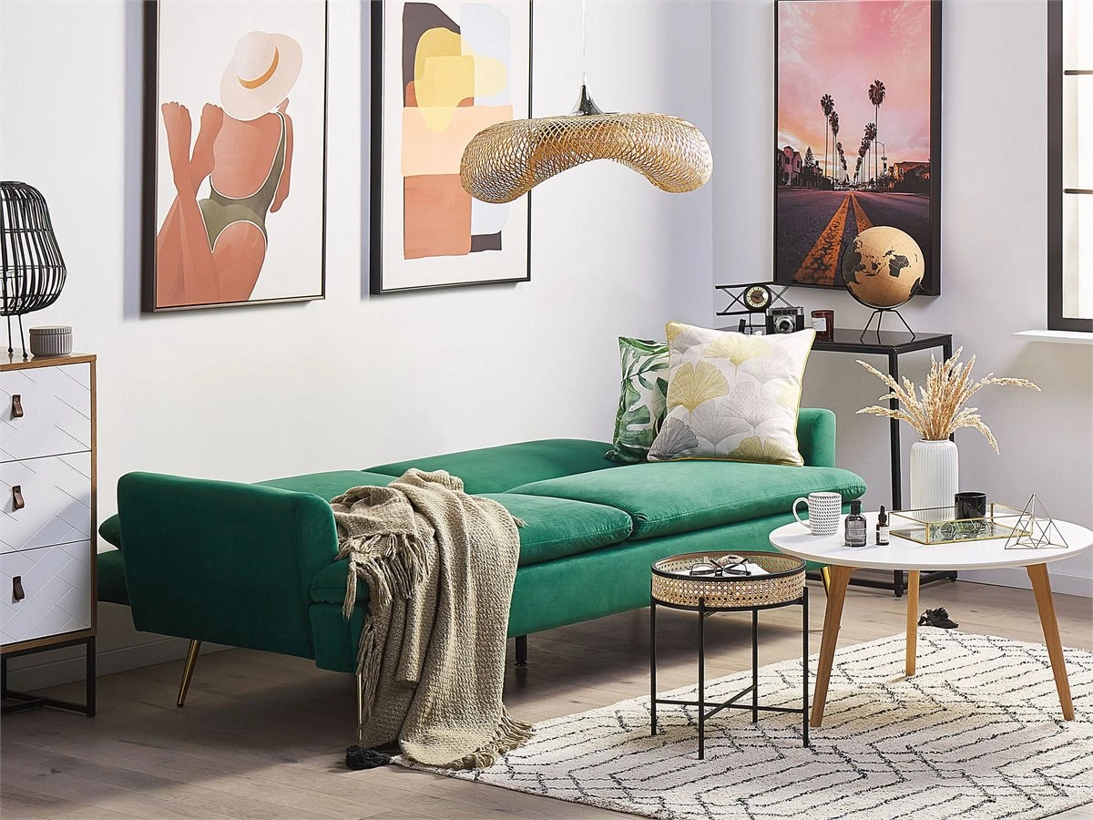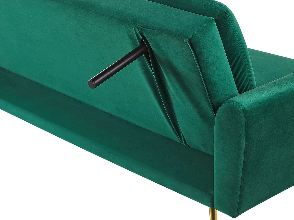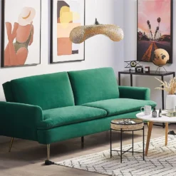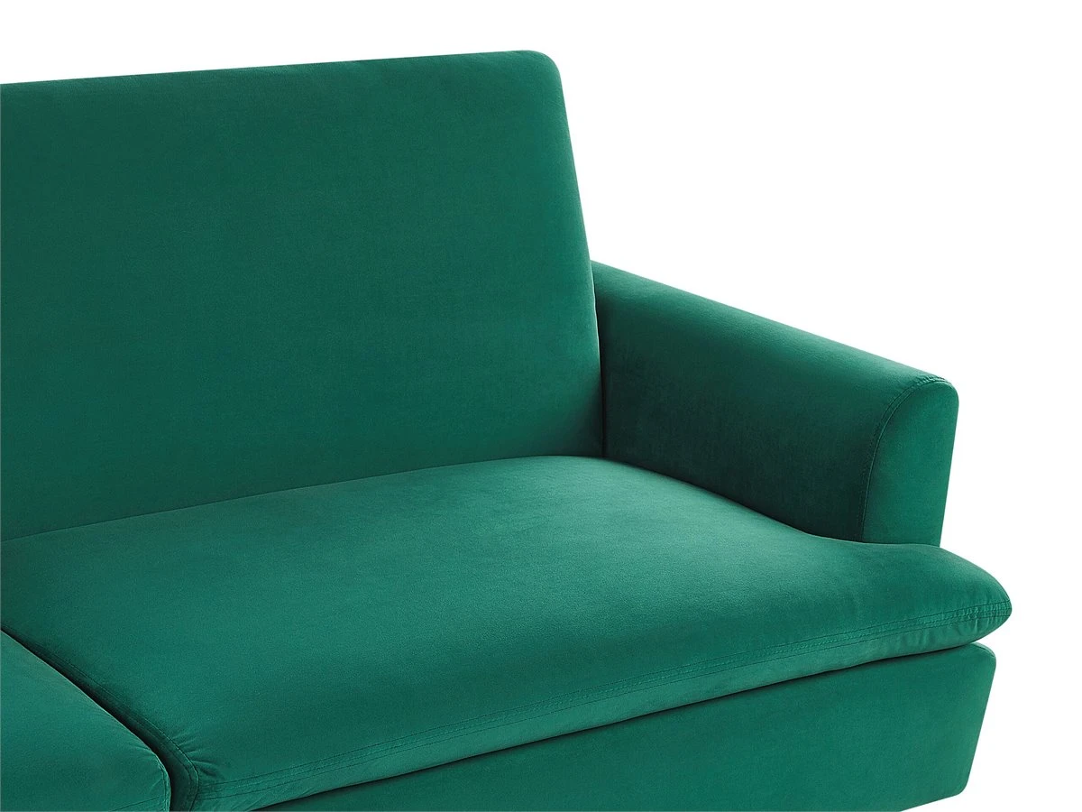Sofá cama de terciopelo. Este sofá cama de diseño moderno encaja bien con cualquier estilo de decoración. Está fabricado a partir de tela de terciopelo suave al tacto. Las patas de metal de forma cónica aportan un toque extra de glamour. Fácilmente convertible en cama gracias al mecanismo clic-clac incorporado. Detalles: Tipo de Producto: Sofá cama Estilo: Glamour Color: Negro Tipo de material: Poliéster aterciopelado Material principal: Terciopelo Material adicional: Metal Material del relleno: Espuma Composición del Material: 100% Poliéster Estilo del apoyabrazo: Diagonal Apoyabrazo: Sí Parte posterior tapizada: Sí Protectores para patas: Sí Reclinable: No Fundas de cojín extraíble: Sí Construcción del asiento: Bandas elásticas Asientos para: 3 personas Función para dormir: Sí Mecanismo de abertura del sofa cama: Mecanismo click-clack Almacenamiento: No Dimensiones: Altura del apoyabrazos: 61 cm Profundidad: 84 cm Espesor del asiento: 11 cm Altura del asiento: 50 cm Ancho: 210 cm Altura: 88 cm Superficie del asiento: 180×52 cm Superficie para dormir: 180×110 cm Peso: 51 kg Capacidad de peso por persona: 120 kg La oferta incluye: 1 x Sofá Ventajas: Se convierte en cómoda cama, Apariencia elegante, Solida estructura, Acolchado de alta calidad, Completamente tapizado, Patas con tapas antideslizantes de seguridad Información de montaje: Requiere montaje parcial. 5-15 min. Información adicional: Tenga en cuenta que la tela de terciopelo puede verse un poco diferente cuando se expone a una iluminación diferente: tiende a brillar más a la luz del día y parece más atenuada en la iluminación artificial interior. Debido a la estructura suave de alta densidad, el tono de la tela de terciopelo también puede variar cuando se pasa la mano en diferentes direcciones y ángulos. Para igualar el color y eliminar las arrugas, el material debe limpiarse con la palma de mano abierta en una dirección, limpiarse con un paño húmedo o una plancha con vapor. Consejos de mantenimiento: Terciopelo: 1.Aspire con un accesorio adecuado 2.Limpiar con champú seco y una esponja húmeda o un limpiador suave.