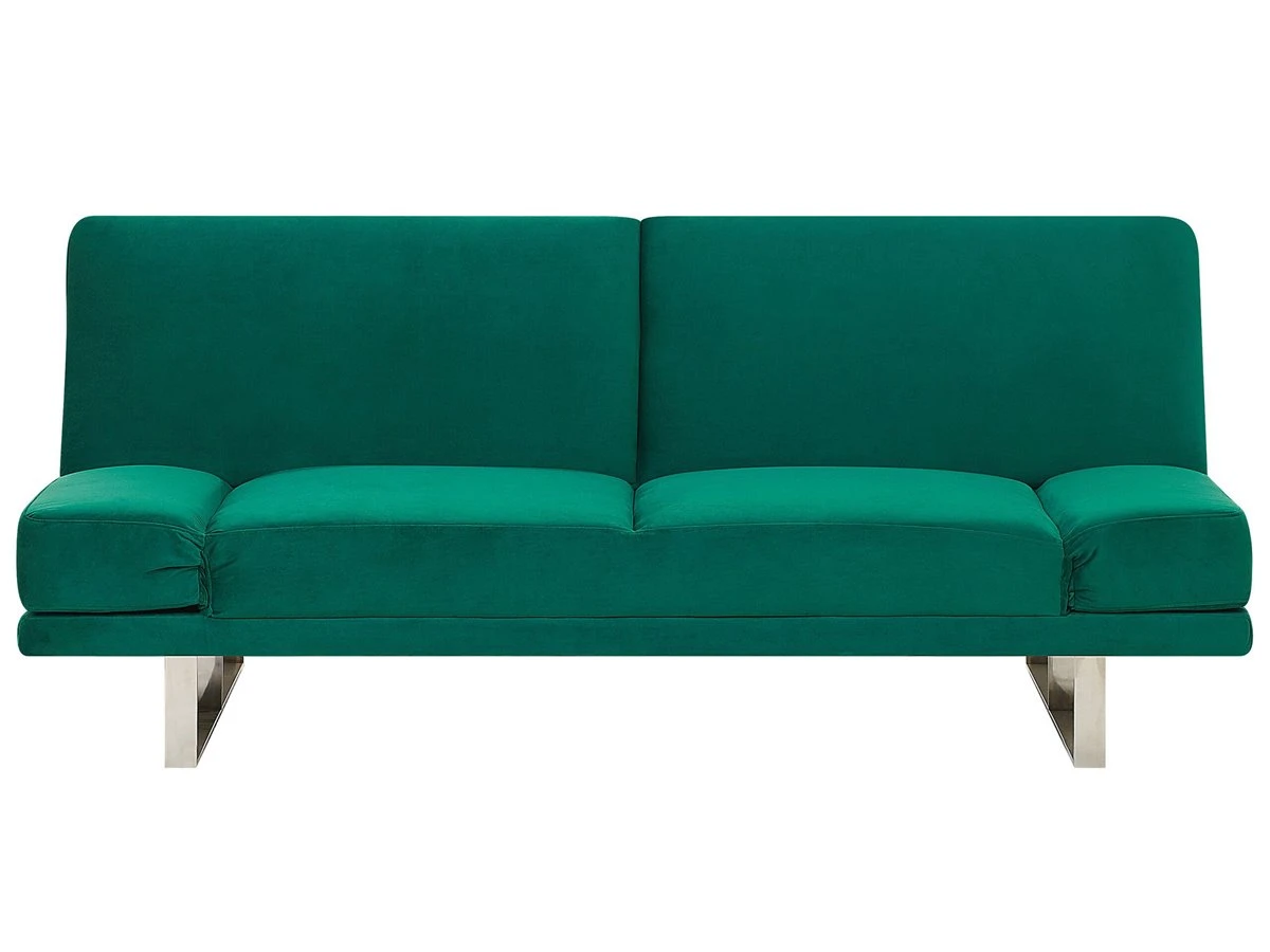 Sofá cama para 2 personas. Este sofá cama de diseño elegante es ideal para una sala de estar de dimensiones reducidas. Está fabricado a partir de terciopelo de alta calidad. El asiento y el respaldo de acolchado grueso ofrecen la máxima comodidad. La estructura de madera y las patas de metal garantizan estabilidad. Fácilmente convertible en cama gracias al mecanismo clic-clac incorporado. Detalles: Tipo de Producto: Sofá cama Estilo: Glamour Color: Verde Tipo de material: Poliéster aterciopelado Material principal: Terciopelo Material adicional: Acero inoxidable Material del relleno: Espuma Composición del Material: 100% Poliéster Estilo del apoyabrazo: Ajustable Apoyabrazo: Sí Parte posterior tapizada: No Protectores para patas: Sí Reclinable: Sí Fundas de cojín extraíble: No Construcción del asiento: Muelles ondulados Densidad de espuma del asiento: 24/60 kg/m3 Asientos para: 2 personas Función para dormir: Sí Mecanismo de abertura del sofa cama: Mecanismo click-clack Almacenamiento: No Dimensiones: Altura del apoyabrazos: 29 cm Profundidad: 89 cm Espesor del asiento: 16 cm Altura del asiento: 41 cm Ancho: 190 cm Altura: 81 cm Superficie del asiento: 190×52 cm Superficie para dormir: 190×105 cm Peso: 44 kg Capacidad de peso por persona: 90 kg La oferta incluye: 1 x Sofá Ventajas: Convertible en cómoda cama, Muy cómodo, Diseño tradicional con un toque moderno, Materiales de la más alta calidad, Tejido aterciopelado suave como la seda, Apoyabrazos ajustables, Patas con tapas antideslizantes de seguridad Información de montaje: Requiere montaje de las patas. 5-15 min. Información adicional: Tenga en cuenta que la tela de terciopelo puede verse un poco diferente cuando se expone a una iluminación diferente: tiende a brillar más a la luz del día y parece más atenuada en la iluminación artificial interior. Debido a la estructura suave de alta densidad, el tono de la tela de terciopelo también puede variar cuando se pasa la mano en diferentes direcciones y ángulos. Para igualar el color y eliminar las arrugas, el material debe limpiarse con la palma de mano abierta en una dirección, limpiarse con un paño húmedo o una plancha con vapor. Consejos de mantenimiento: Terciopelo: 1.Limpiar con champú seco y una esponja húmeda o un limpiador suave 2.Aspire con un accesorio adecuado. Acero inoxidable: 1.Para evitar arañazos, no use limpiadores abrasivos 2.Limpie con un limpiador y un paño suave, seque después 3.Para elementos de cobre o cromados, use agente abrillantador.