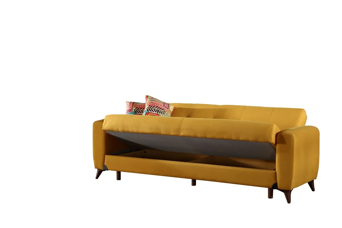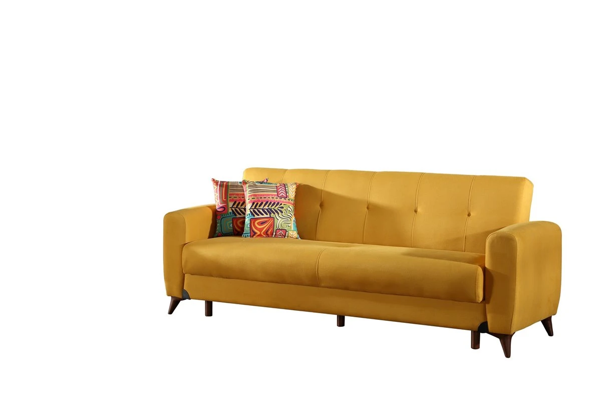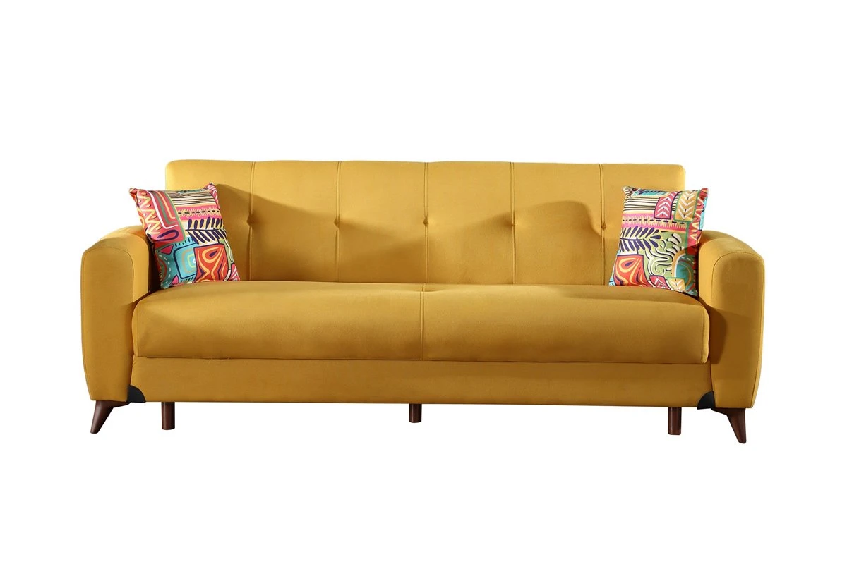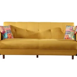 Se trata de un sofá convertible en cama de 195 x 113 cm con dos cojines incluidos. De hecho, una de las mejores ventajas de este producto es su diseño multifuncional, ya que además de servir como cama y sofá, también dispone de un arcón de almacenaje para que puedas guardar los objetos que no utilizas.
