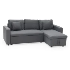 ¡Amantes de la comodidad al mejor precio! Descubre el sofá esquinero convertible de 3 plazas CLARK! Práctico, el chaise longue te permitirá estirar las piernas y dormir una siesta. Si necesitas una cama, el sofá esquinero CLARK se puede transformar en unos segundos en una cama doble muy cómoda. También tiene un arcón debajo del diván, perfecto para guardar edredones y almohadas o cualquier otra cosa, ¡tú decides!