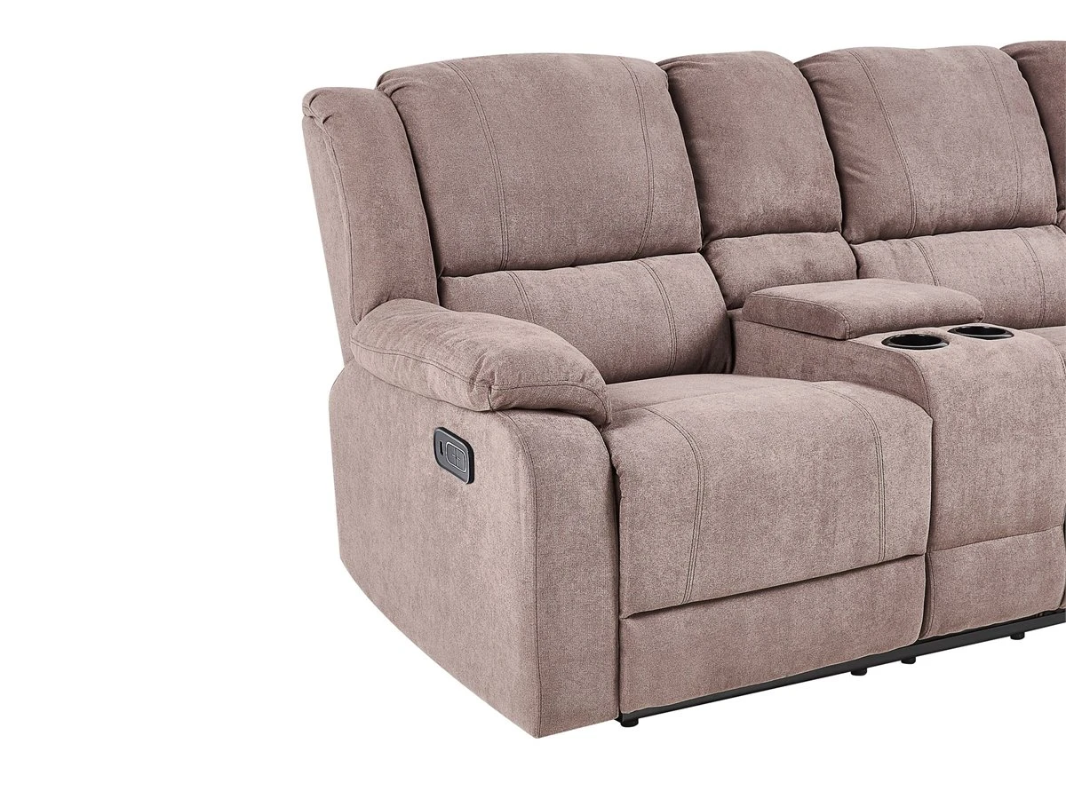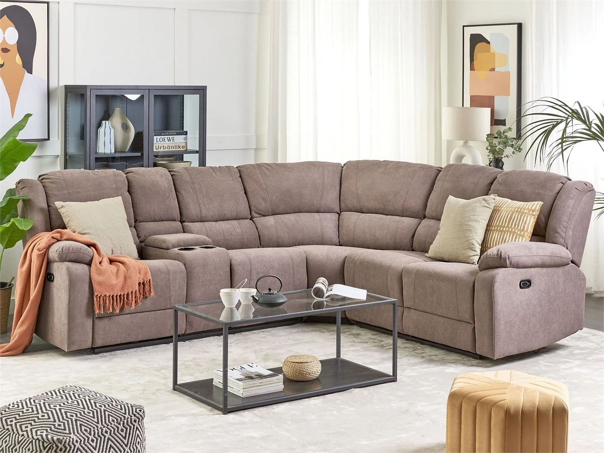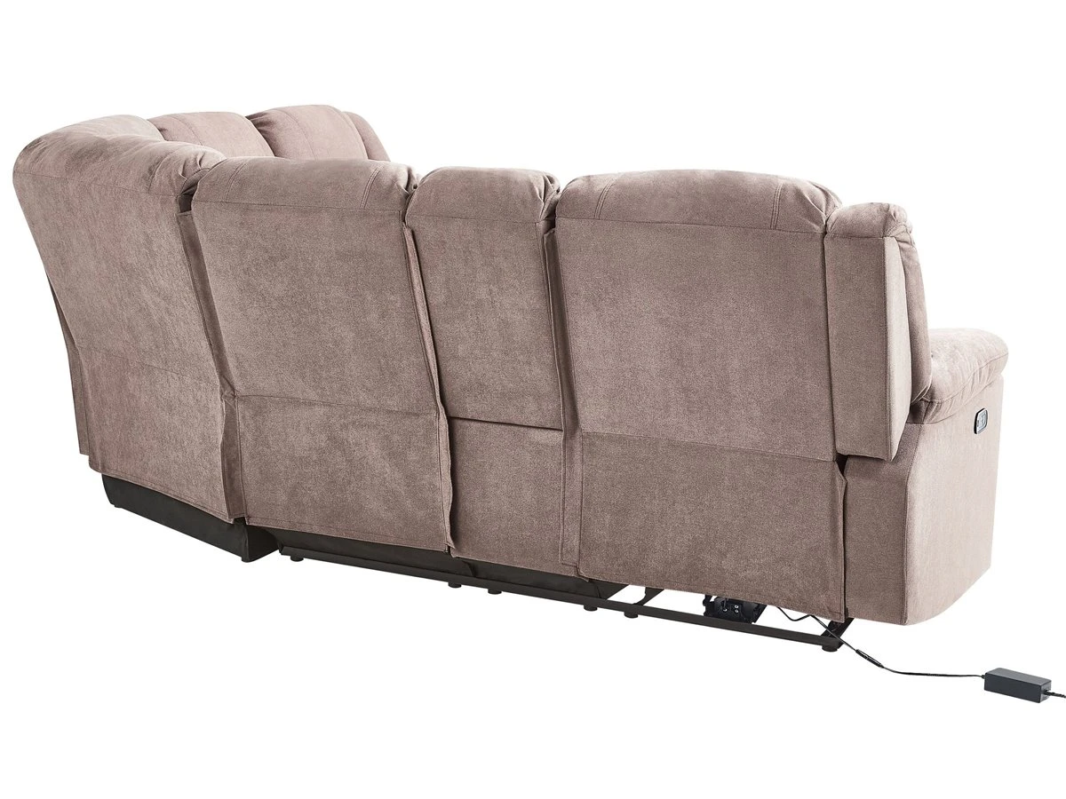 Sofá reclinable con USB. Añade a tu sala de estar este sofá esquinero de estilo moderno. Está fabricado a partir de tela de poliéster de alta calidad y resistente al desgaste. El diseño con líneas curvas y el acolchado grueso ofrecen la máxima comodidad. Los 2 asientos en las esquinas incluyen un ajuste eléctrico que permite bajar el respaldo y subir el reposapiés con sólo pulsar un botón. Dispones de un puerto USB integrado, uno a cada lado. El reposabrazos central incluye un portavasos y un espacio de almacenaje oculto. Detalles: Tipo de Producto: Sofá reclinable Estilo: Moderno Color: Beige Tonalidad: Gris pardo Tipo de material: Tejido Material principal: Poliéster Material adicional: Madera contrachapada Material del relleno: Espuma Composición del Material: 100% Poliéster Forma: Forma de L Partes ajustables: Respaldo Tipo de ajuste: Eléctrico Estilo del apoyabrazo: Con cojín Apoyabrazo: Sí Parte posterior tapizada: Sí Consumo de potencia: 50 W Orientación: Izquierda Diseño: Sólido Potencia de salida: +29V 2A Construcción del asiento: Muelles ondulados Densidad de espuma del asiento: 24 kg/m3 Asientos para: 4 – 6 personas Puerto USB: 5-10 Dimensiones: Altura del apoyabrazos: 65 cm Profundidad: 196 cm Espesor del asiento: 45 cm Altura del asiento: 53 cm Ancho: 229 cm Altura: 94 cm Superficie del asiento: 195×56 cm Peso: 140 kg Capacidad de peso por persona: 150 kg La oferta incluye: 1 x Sofá esquinero Ventajas: Práctico compartimento de almacenamiento en el reposabrazos, Reposapiés y brazos ajustables, Brinda sensaciones de relax, Acolchado grueso, Cómodos apoyabrazos, Diseño tradicional con un toque moderno, Puerto de carga USB Información de montaje: Requiere montaje parcial. 20-40 min. Consejos de mantenimiento: Poliéster: 1.Limpiar con champú seco y una esponja húmeda o un limpiador suave 2.Aspire con un accesorio adecuado.